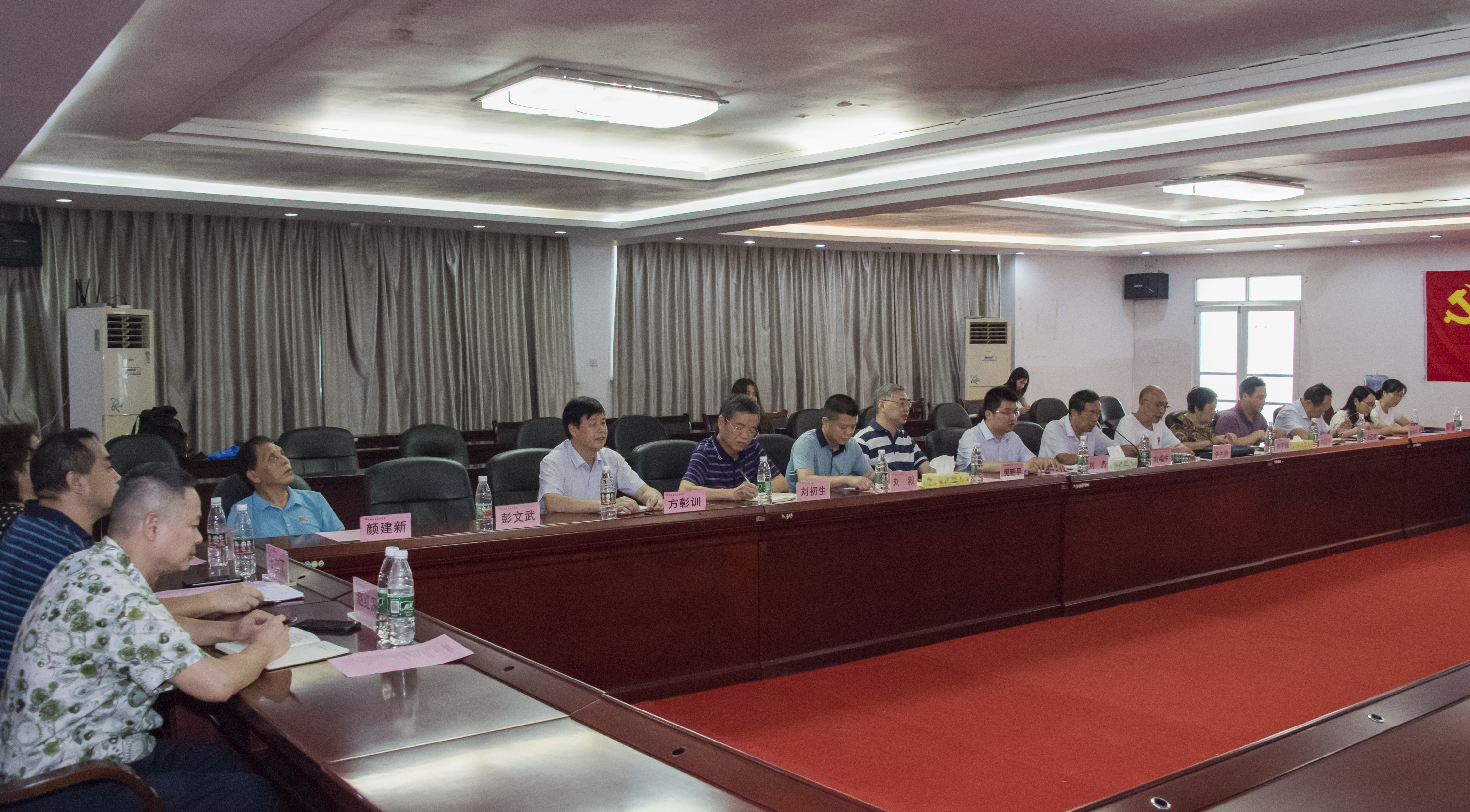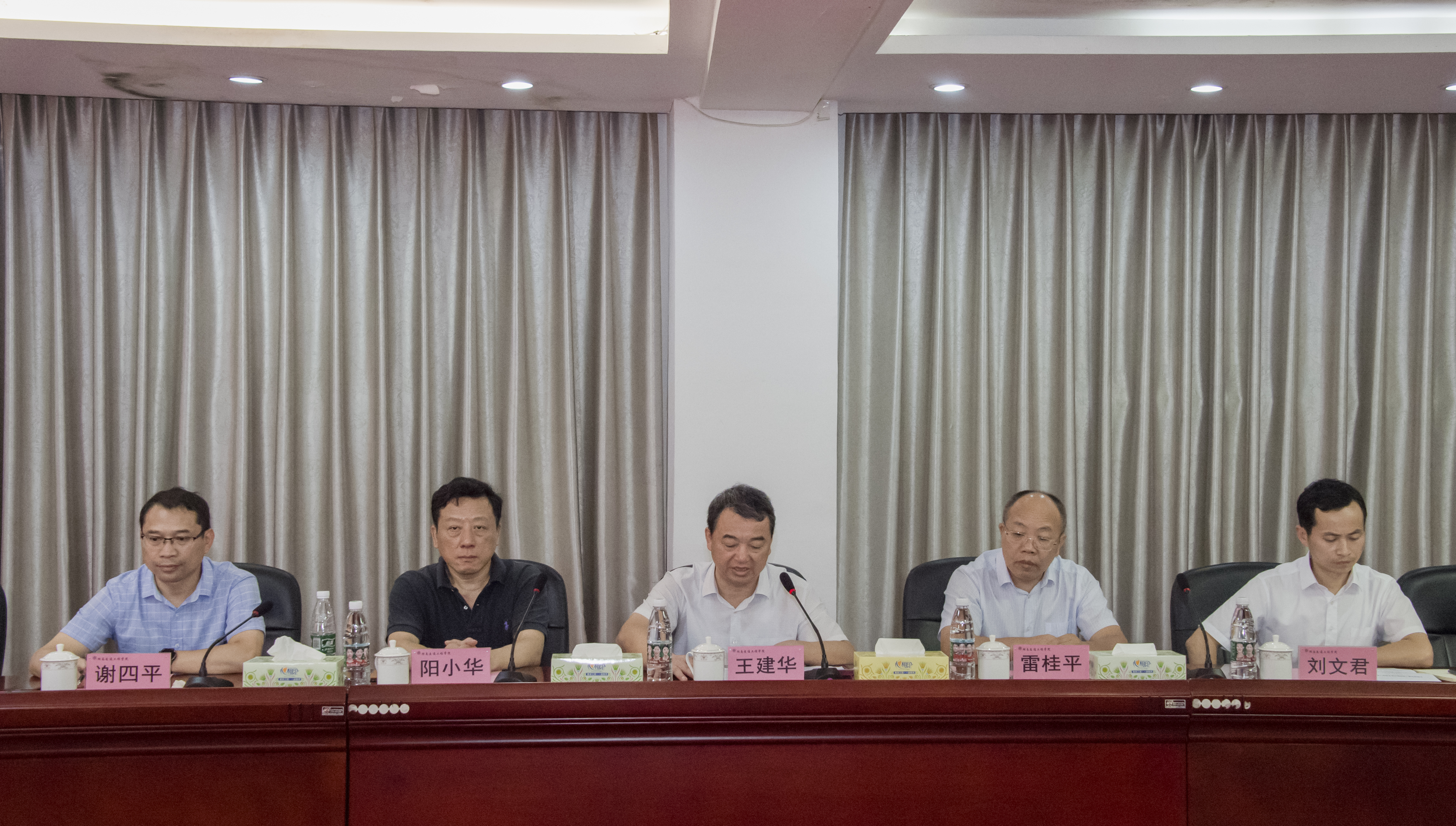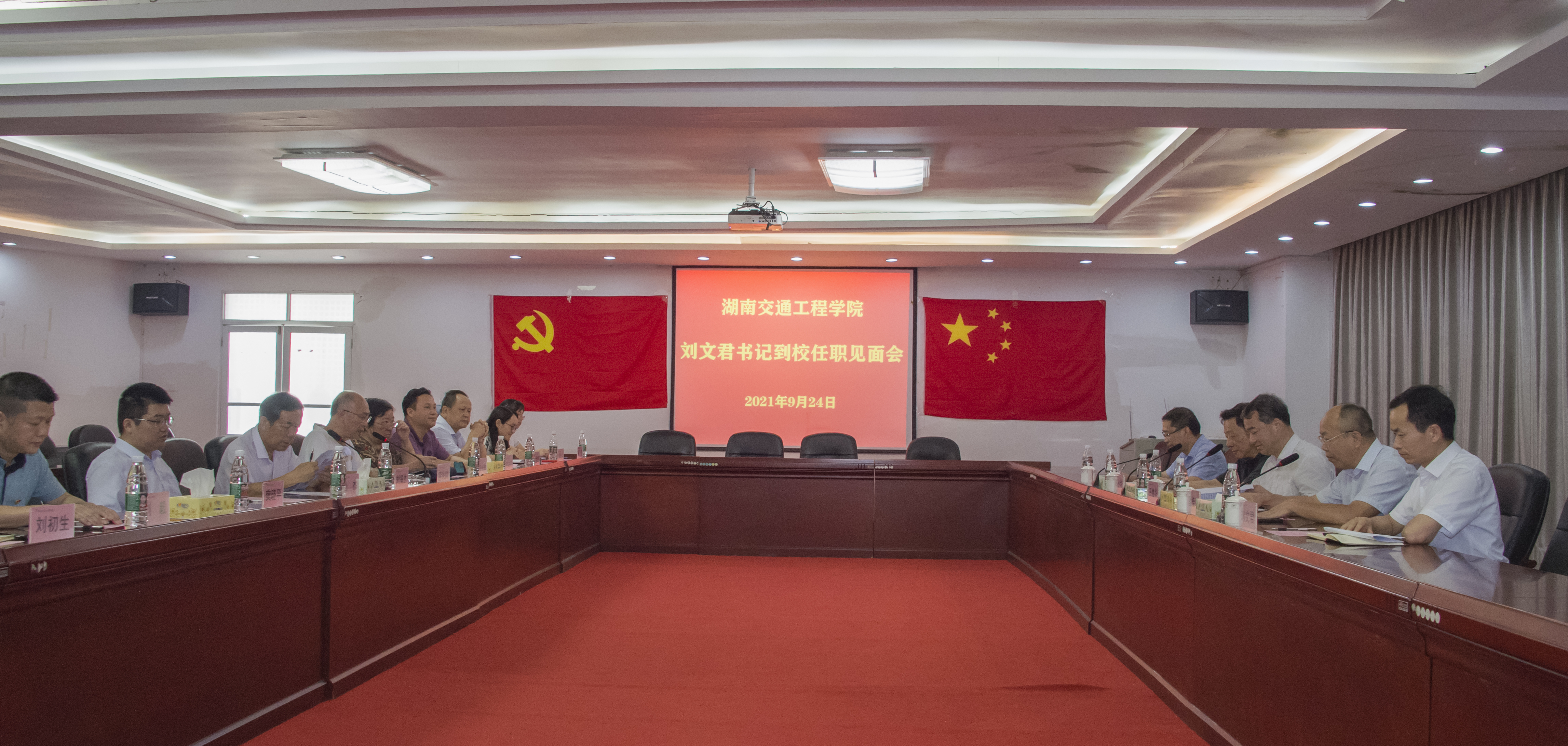 本网讯( 记者 赵红深 摄影 李建华 )为切实加强我校党建工作,落实中共中央国务院《关于新时代加强和改进思想政治工作的意见》和第二十七次全国高校党的建设工作会议精神,推动民办高校健康持续发展,9月24日上午,在省委教育工委副书记王建华的带领下,省委教育工委二级巡视员雷桂平,党建结对帮扶单位南华大学党委副书记阳小华、组织部长谢四平等人的陪同下,我校新任党委书记(督导专员)刘文君同志到任履职。校长陈治亚在北京参加教育部专项核查不能出席会议,学校全体董事会成员、党委委员、校行政领导及党建部门负责人参加了见面会。会议由党委副书记李先聪主持。