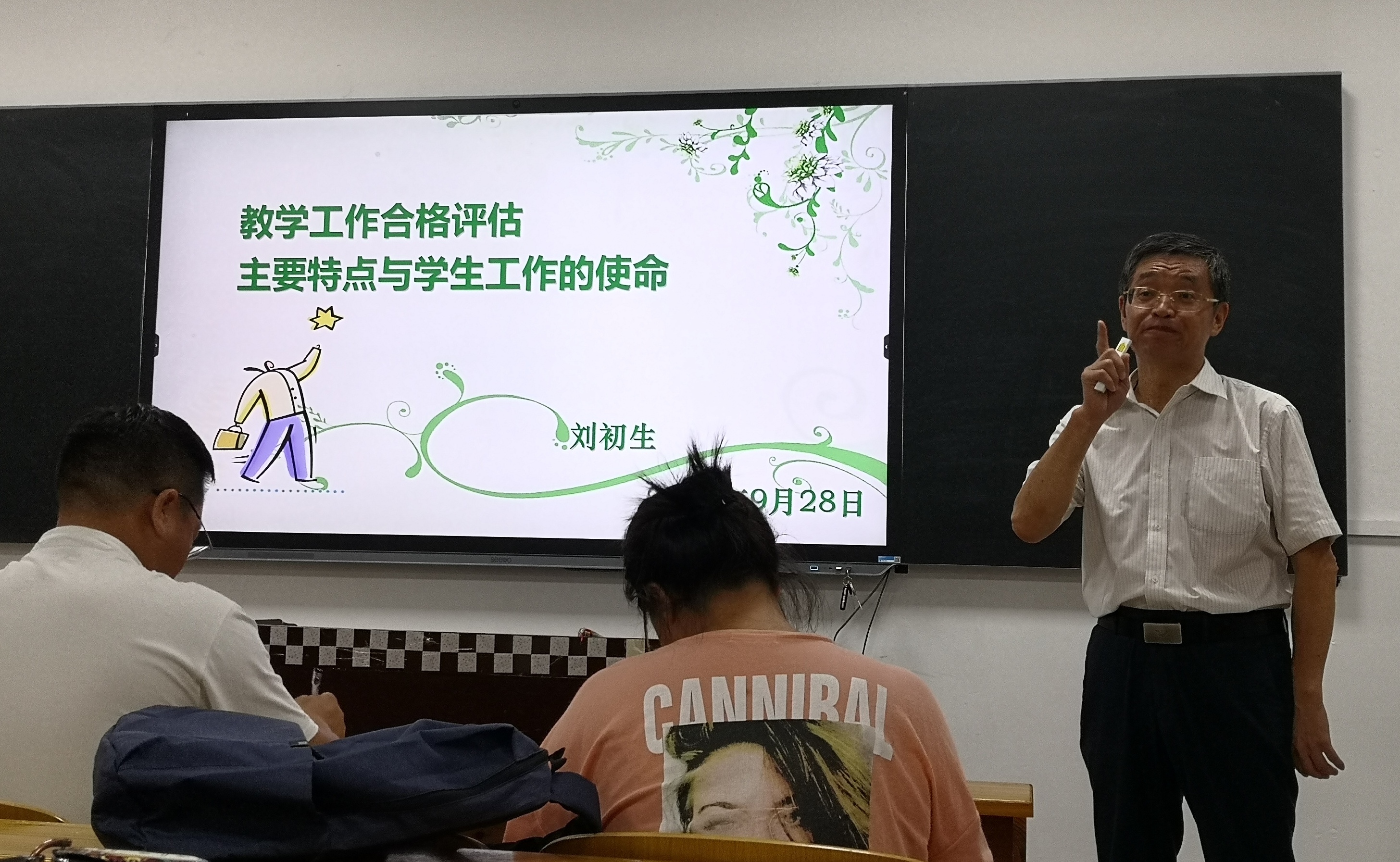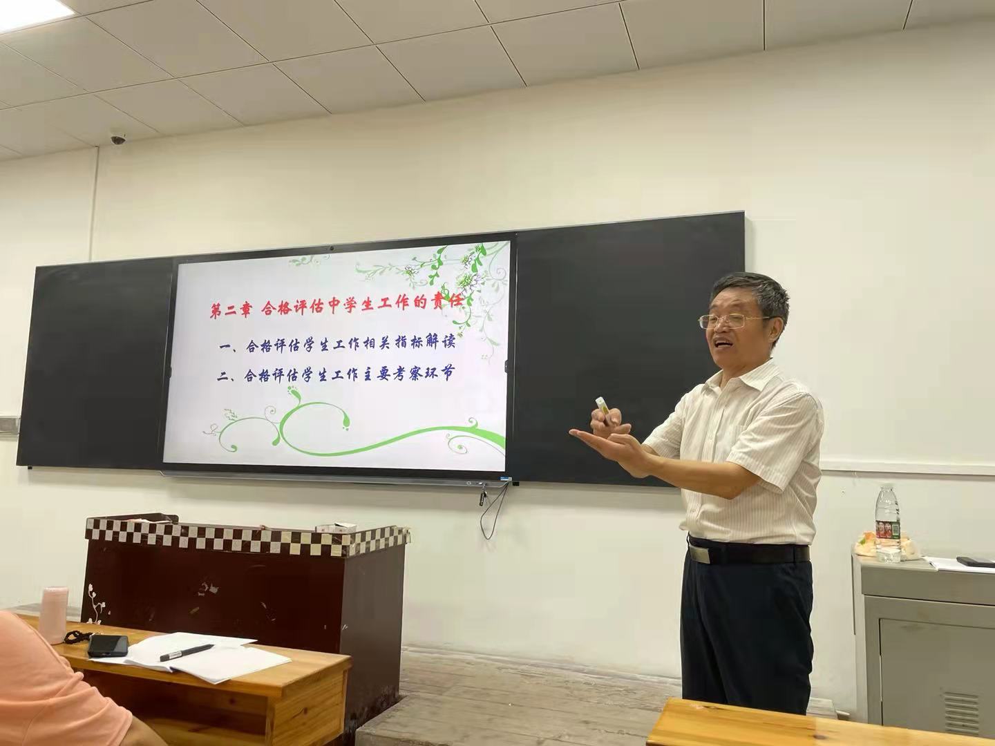 本网讯(记者 赵红深 摄影 方瑜 ) 9月28日晚19:00,副校长刘初生教授在教学楼201室为全校学工系统作“教学工作合格评估主要特点与学生工作的使命”学术报告。副校长余孟辉出席报告会并主持,各二级学院书记、副书记、全体辅导员参加培训。