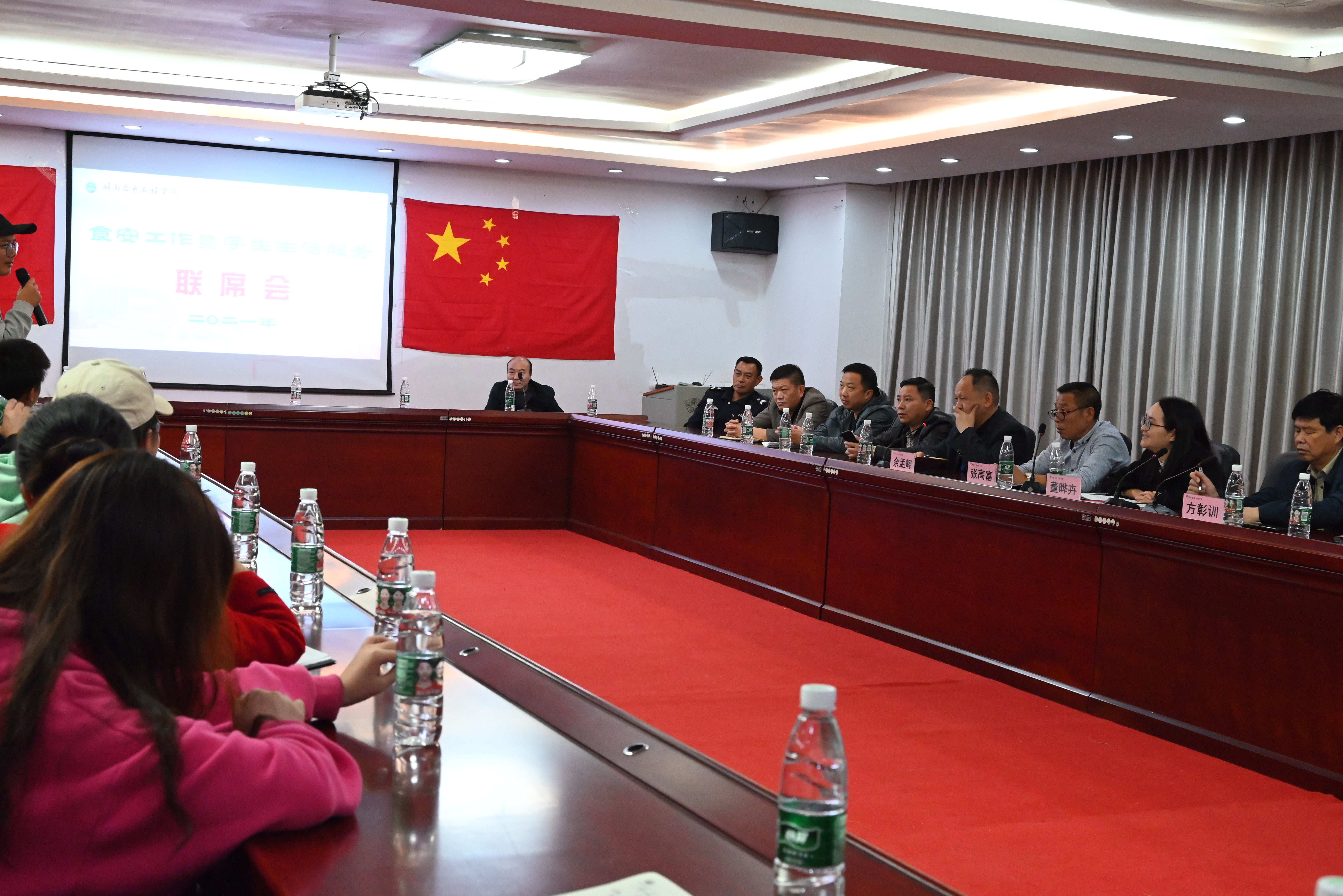 10月15日上午,学工部、食安会和保卫处共同举办以饮食安全与学生生活服务工作为主题的师生座谈会,校董事会董事董晔卉、副校长余孟辉、校长助理方彰训等校领导出席会议并讲话,相关部门负责人、食堂工作人员代表、辅导员代表、校学生会权益部和各二级学院学生代表60余人参加会议。会议由余孟辉主持。