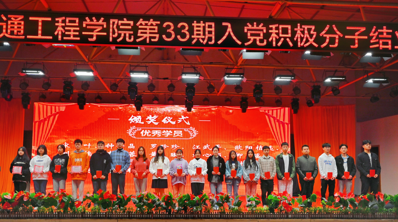 典礼在雄壮的国歌声中拉开序幕。在本次党课培训中涌现出一批学习刻苦、考试成绩突出的优秀学员。王立丁宣读了《关于表彰第33期入党积极分子培训班优秀表彰的决定》,授予经济管理学院党总支“优秀组织奖”,授予陈旭等37人“优秀学员”。刘文君为优秀组织奖单位颁发了奖牌;李先聪、王立丁和各二级学院党总支书记为获奖学员颁发了荣誉证书。