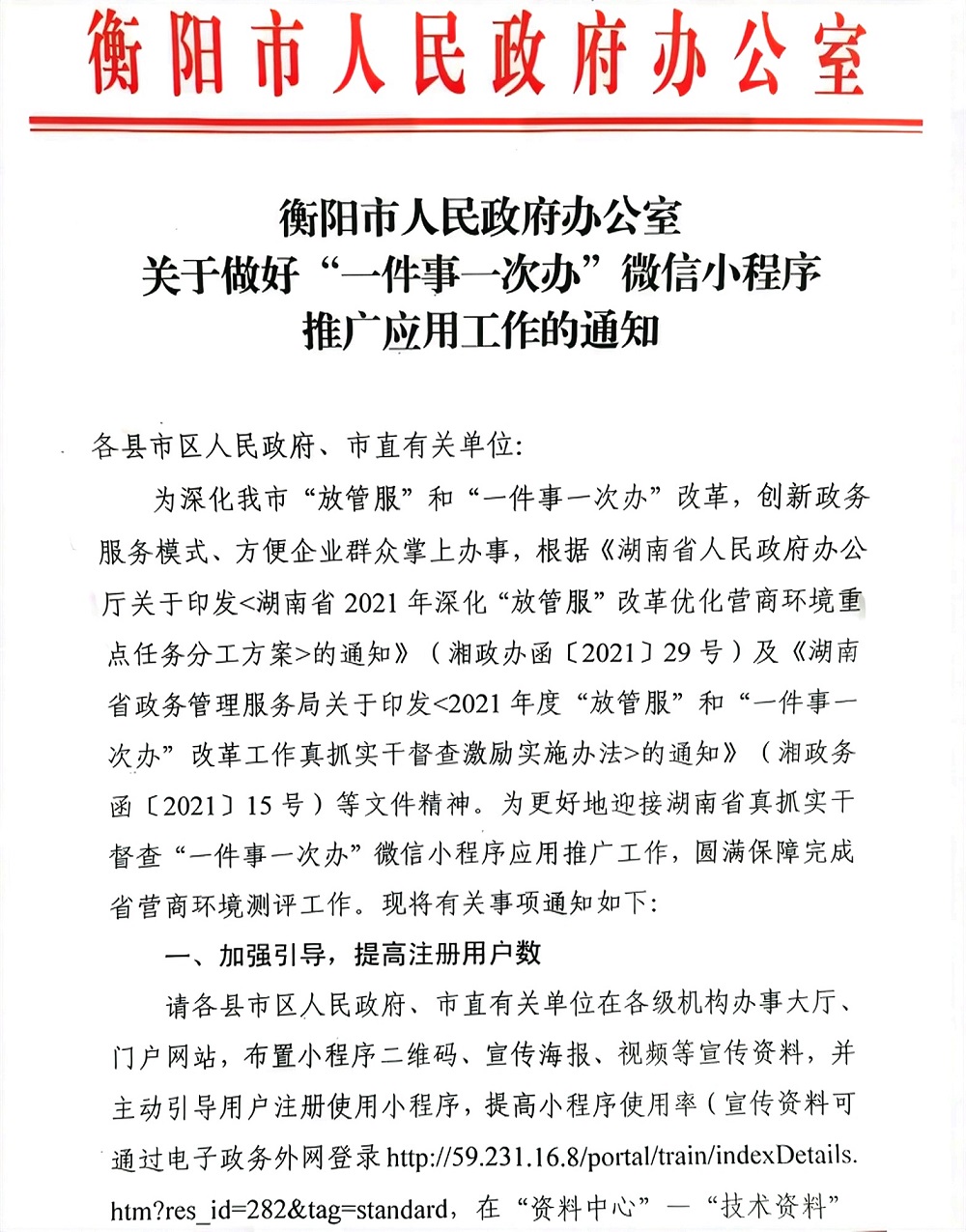 好消息!!!衡阳市政府办公室关于做好“一件事一次办”微信小程序推广应用工作的通知