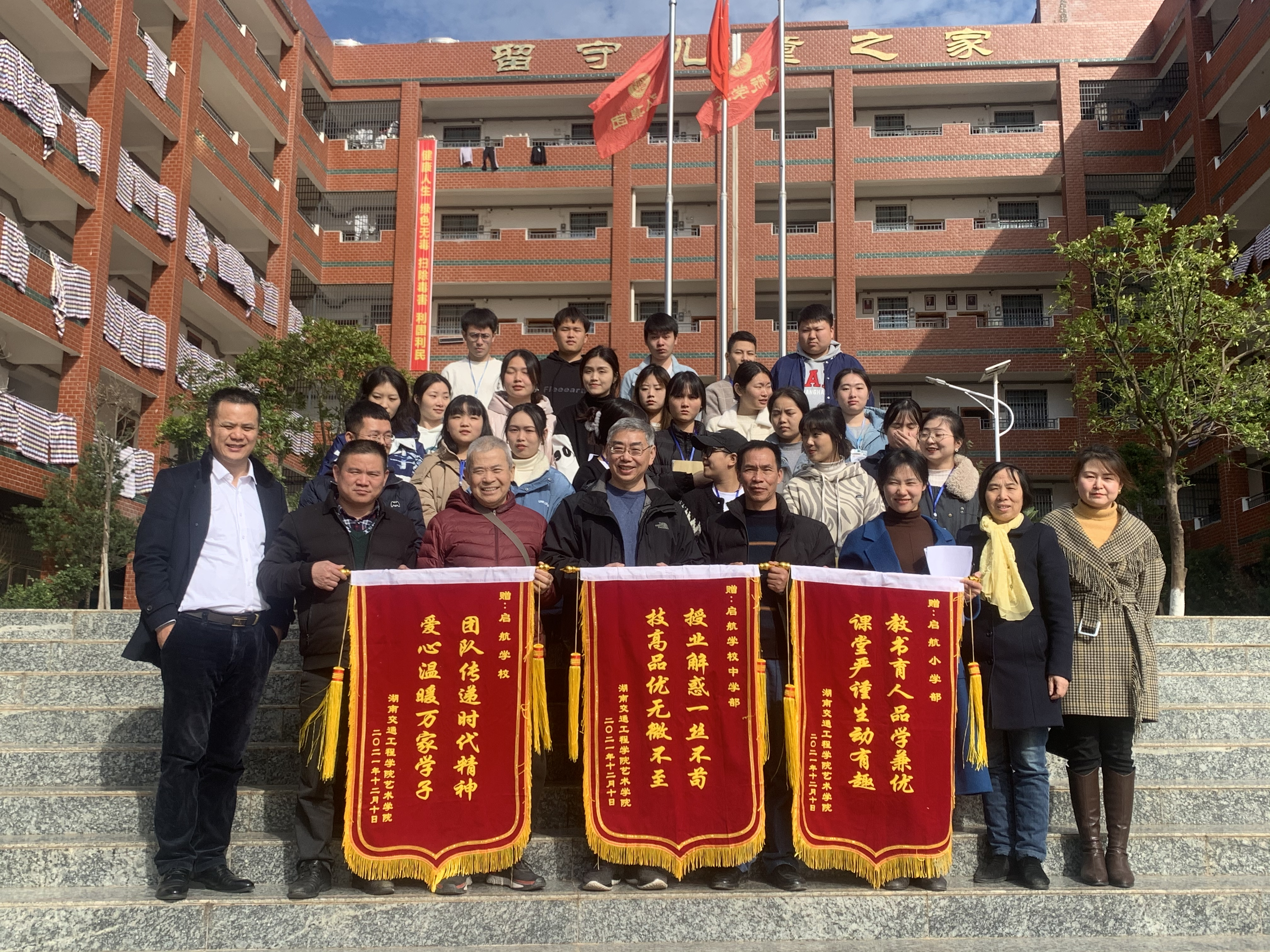 本网讯(通讯员 霍志玮)为全面掌握我校大学生实习情况,进一步规范和强化本科实习管理,11月25日,学校副校长樊晓平率领人文与艺术学院院长李荣、教务处常务副处长黄玲娟、教务处霍志玮一行四人,赴祁东启航学校看望我校人文与艺术学院音乐表演专业2018级50余位实习本科生和罗梓齐、曾冰岩两位指导老师,并检查指导工作。