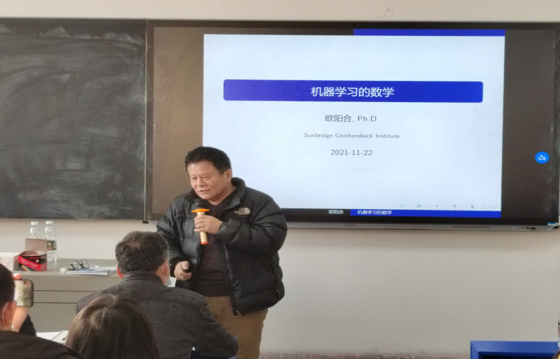 欧阳合的两场学术报告着重介绍了纯粹数学与人工智能、人工智能与理论物理的深刻联系及其理论和应用问题。欧阳合以他特有的深入浅出的教学方式和自身参与硅谷人工智能研究的范例进行讲学,为广大师生介绍了一些全新的未来发展方向的知识,使参与听课的师生无不感受到人类智慧的辉煌。在提问环节,欧阳合针对师生们提出的相关问题进行了认真解答和进一步深入探讨与交流。200人的大教室座无虚席、反响热烈。