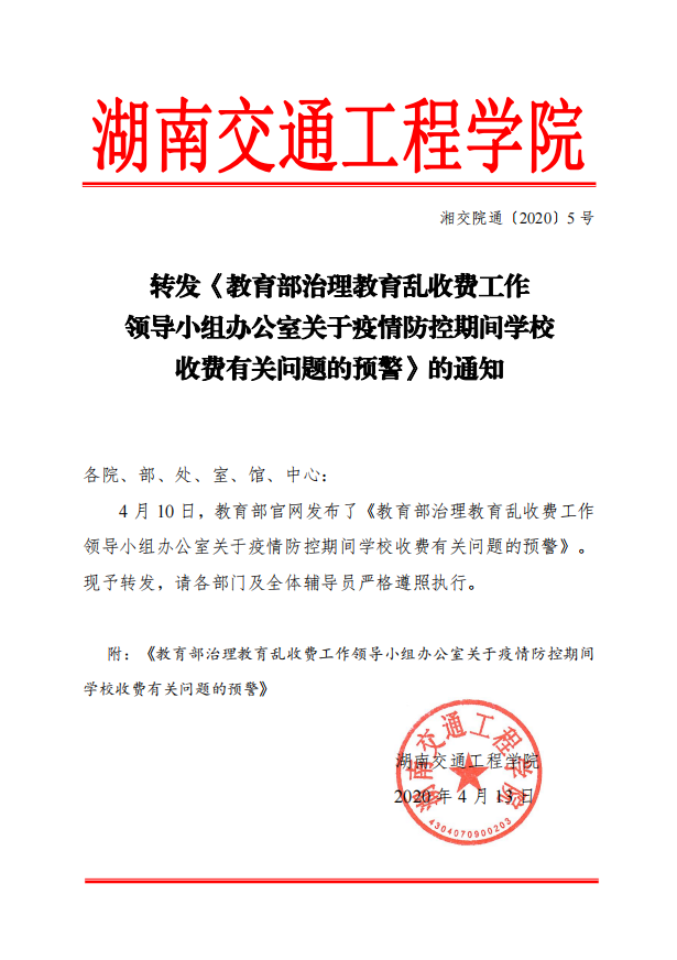 转发《教育部治理教育乱收费工作领导小组办公室关于疫情防控期间学校收费有关问题的预警》的通知