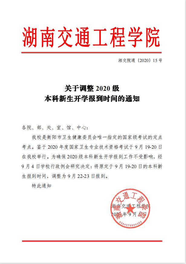 关于调整2020级本科新生开学报到时间的通知