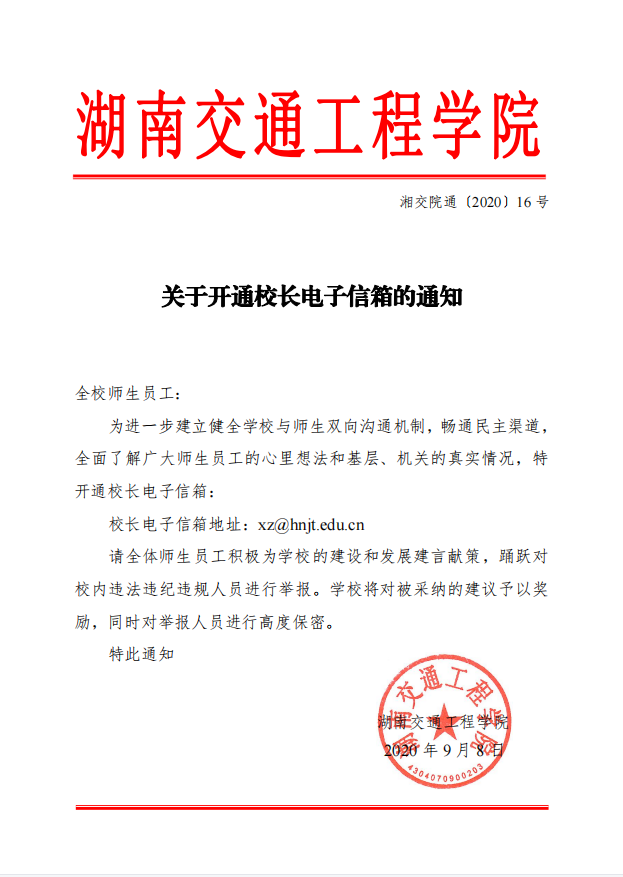 关于开通校长电子信箱的通知