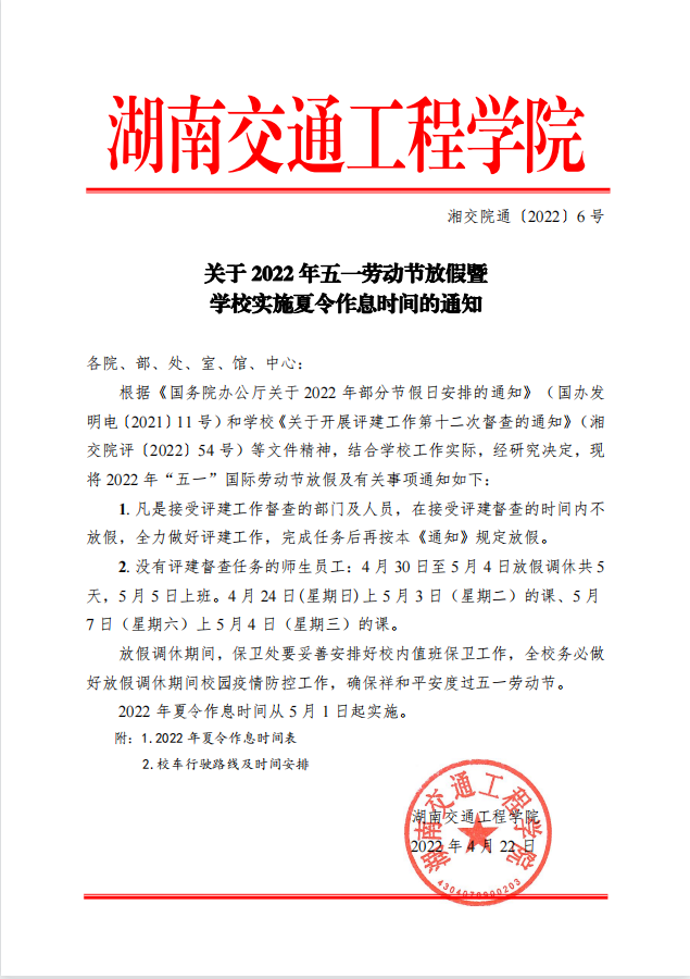 关于 2022 年五一劳动节放假暨学校实施夏令作息时间的通知