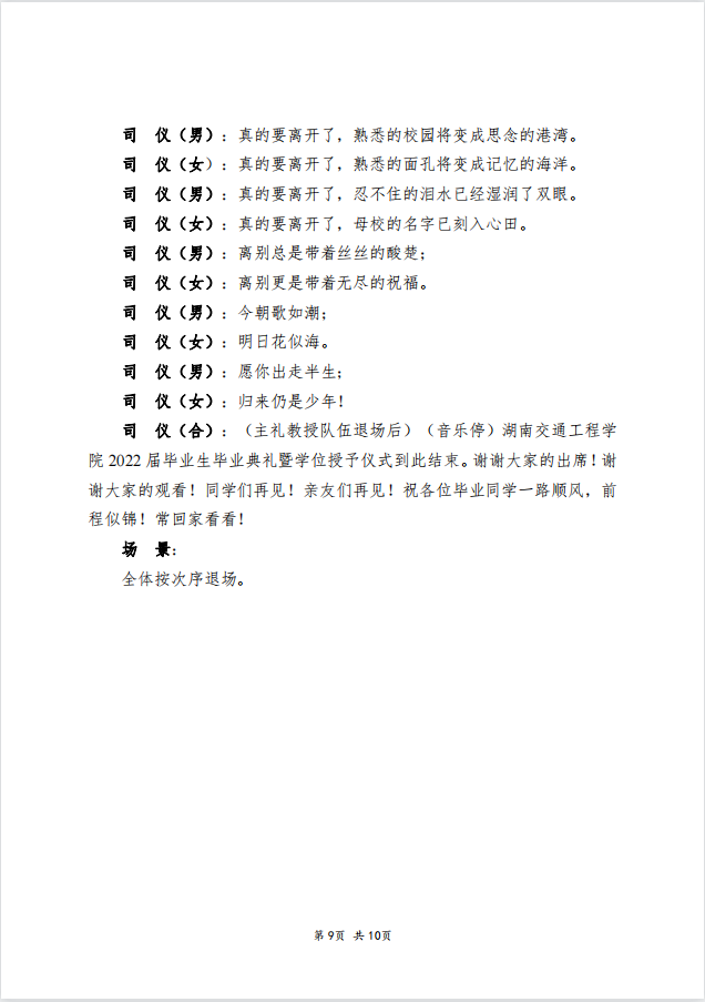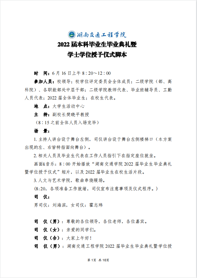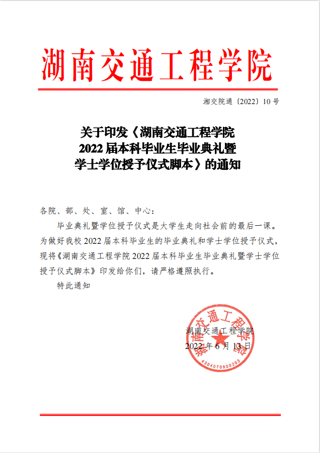 关于印发《18新利在线登陆 2022 届本科毕业生毕业典礼暨学士学位授予仪式脚本》的通知