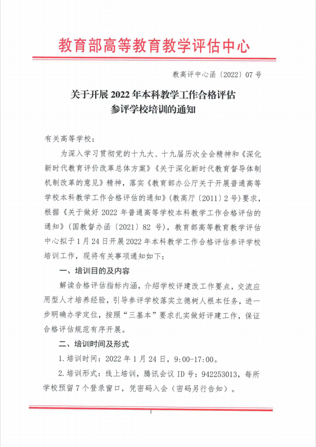 转发:关于开展2022年本科教学工作合格评估参评学校培训的通知