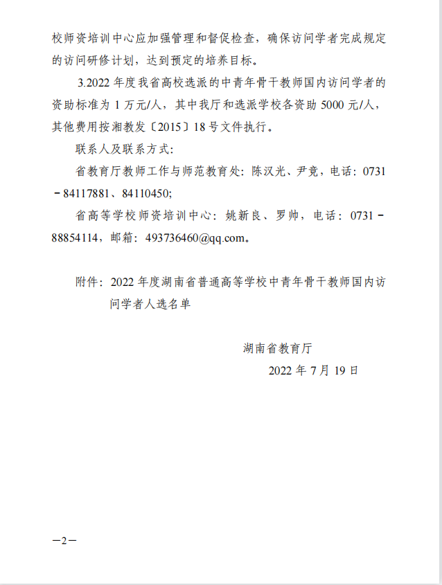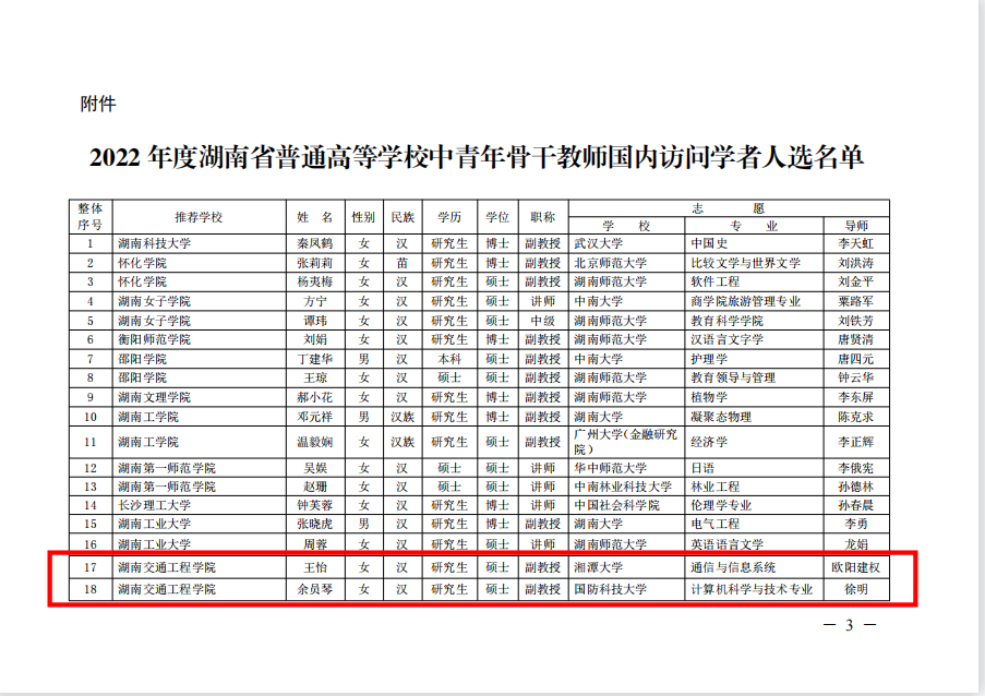 喜讯|转发:关于公布2022年度湖南省普通高等学校中青年骨干教师国内访问学者人选的通知