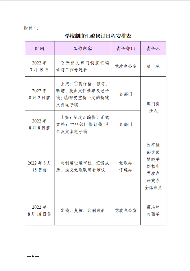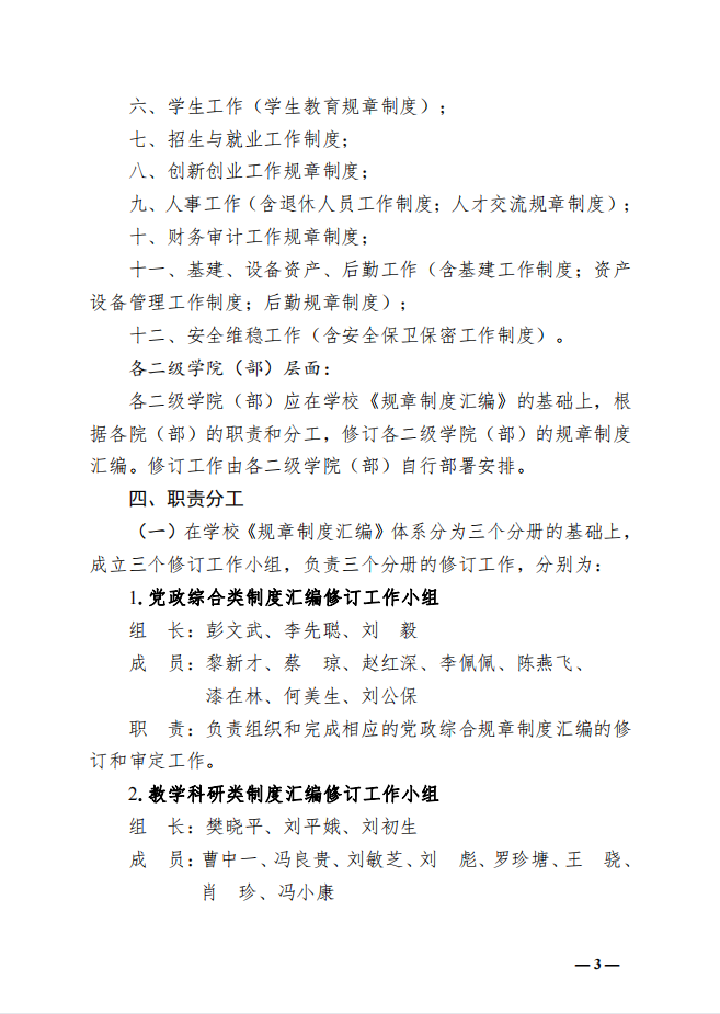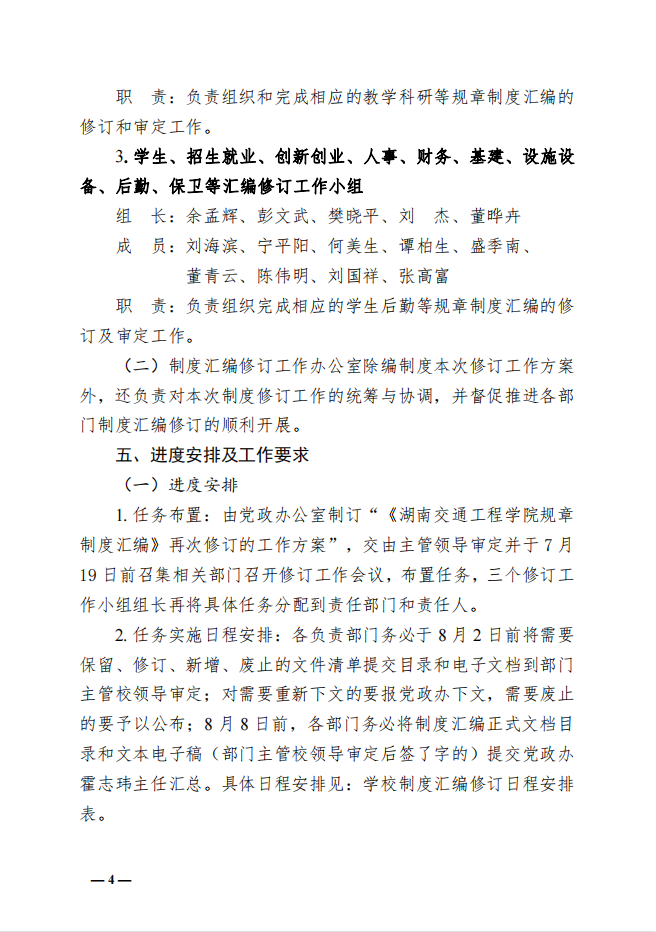 关于再次修订《规章制度汇编》工作方案