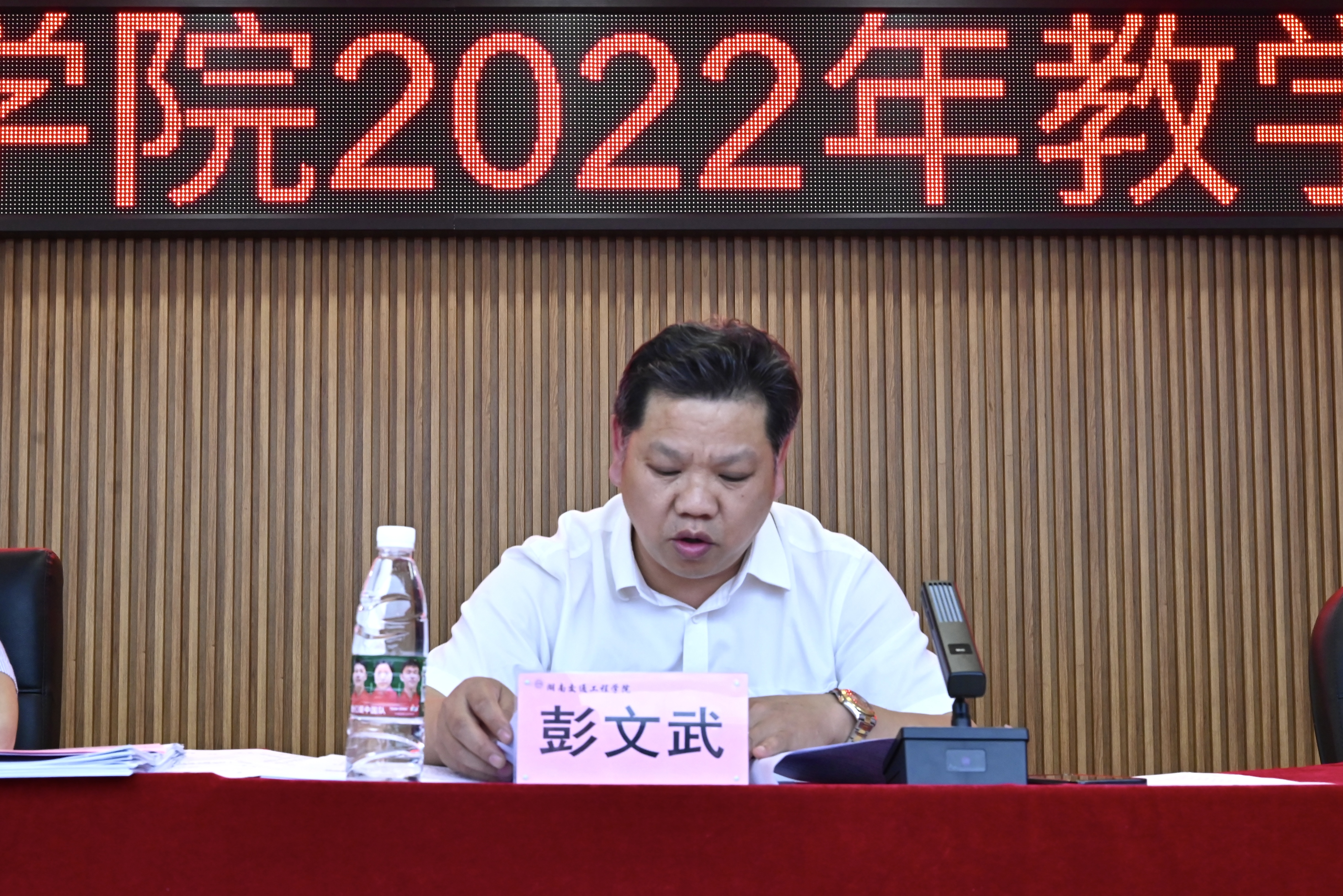彭文武以“卧薪尝胆,求真务实,着力提升本科教学质量”为题从六个方面作了教学工作报告,一是以规范课程教学为重点,全面加强教风建设;二是加强制度建设,提高教学管理水平;三是认真备课、磨课,全力以赴上好每堂课;四是全面落实“五段五层”计划,超常规推进毕业论文(设计)工作;五是规范实验实习教学管理,保障实验实习教学质量;六是加强师资队伍建设,提高教师综合素质。