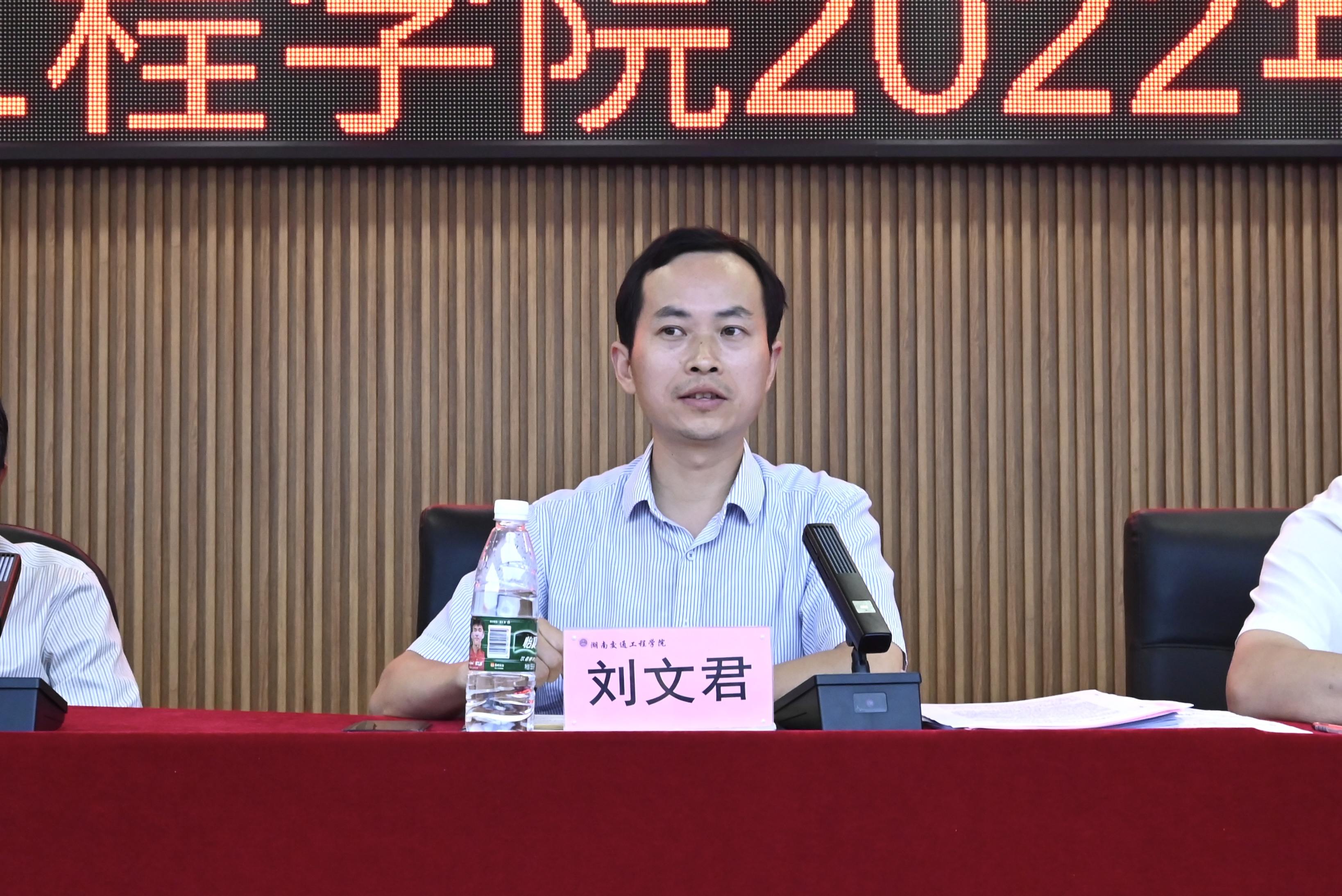 刘文君指出,当前,学校正处在全力以赴迎接教育部本科教学工作合格评估的关键时期。学校的发展与每位师生息息相关,全校上下没有与评估无关的事,没有与评估无关的人。我们必须从讲政治的高度提高对教学工作中心地位的再认识;必须打破路径依赖强化对评建工作重要意义的再理解;必须树立咬定目标不放松的必胜信心,贯彻落实好各项工作部署,着力提升人才培养质量,为实现学校愿景发展贡献更大的力量!就师德师风建设,刘文君提出三点要求,一是守住师德师风底线、红线,  他带领大家一起重温了《关于加强和改进新时代师德师风建设的意见》;二是树立职业道德的高线;三是坚持本科人才培养中心地位不动摇。