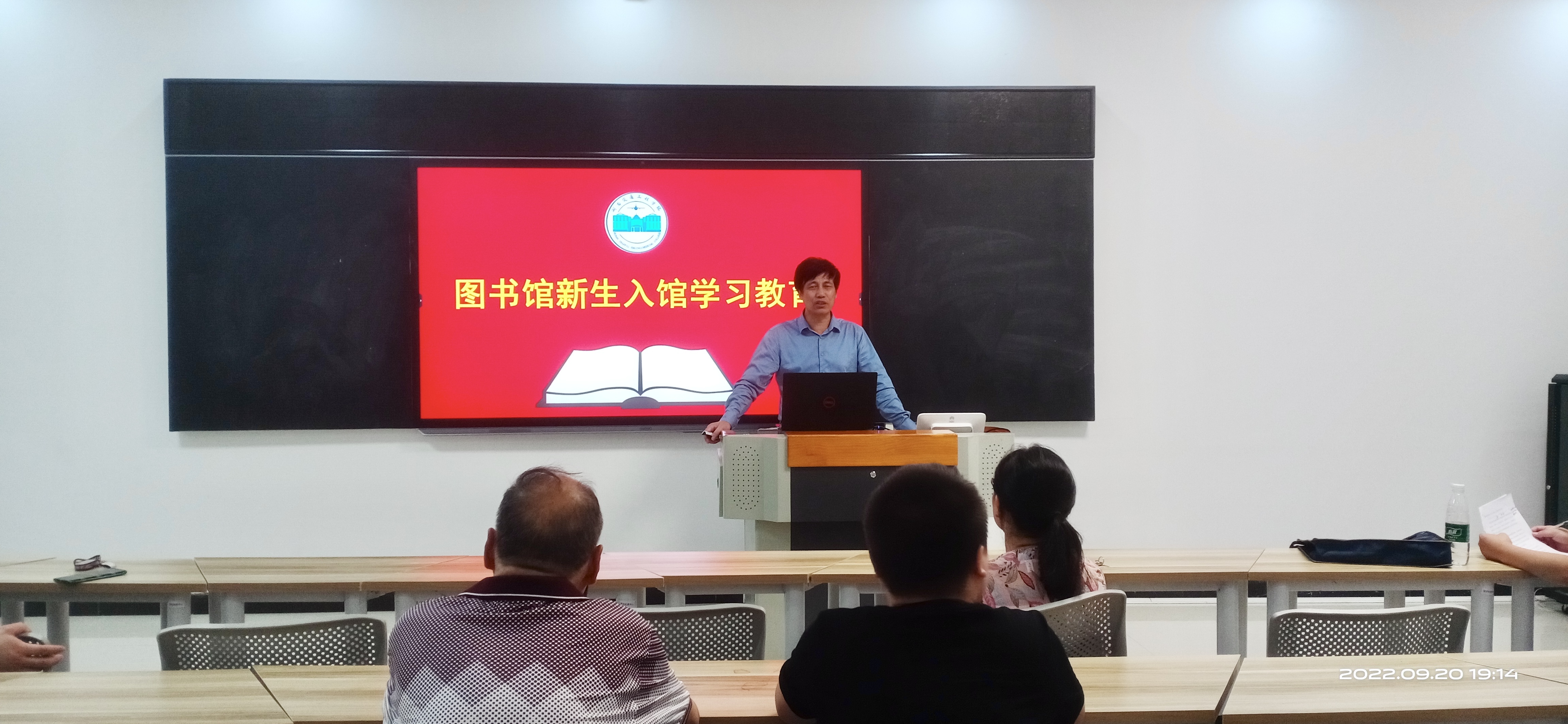 本网讯(记者 摄影 范睿庭 )为了帮助新生迅速了解图书馆丰富的馆藏资源和多维服务体系,提升同学们利用馆藏资源学习和科研的综合能力,9月20日,校图书馆在航母楼301举办2022级新生入馆线上教育活动。本次活动通过线上直播方式向全校同学进行入馆教育,活动由副教授张海兵主持,邀请教师发展中心吴广平教授、图书馆万魏老师、中国知网(CNKI)李墨君讲师、世纪超星庹琼霞讲师四位老师讲解和演示,学校近4000名2022级新生参加了本次教育活动。