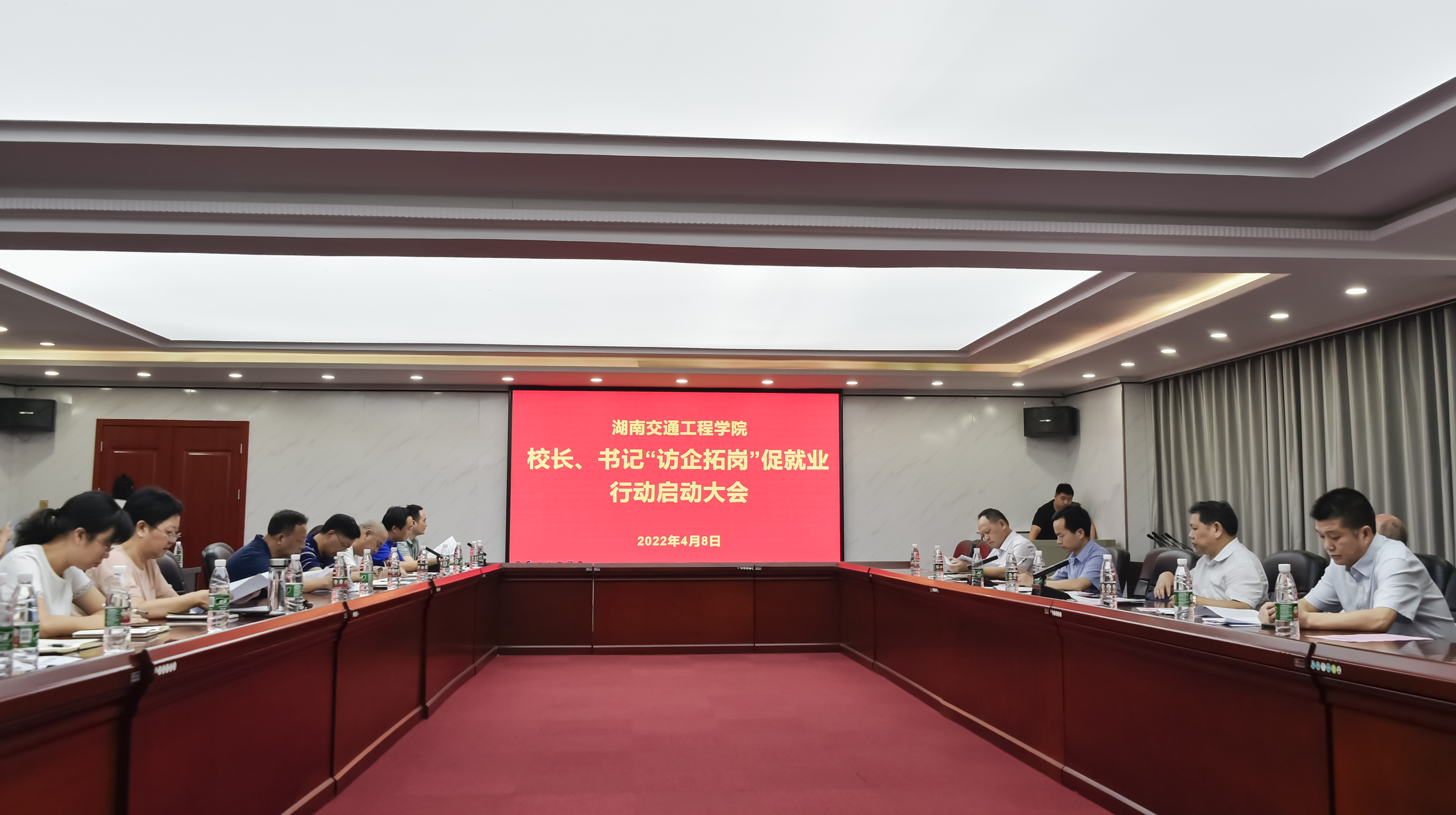 本网讯(通讯员 赵红深 摄影 李建华 )为积极响应教育部、湖南省教育厅关于高校书记校长访企拓岗促就业专项行动要求,充分发挥我校党委、行政领导班子带头做好毕业生就业工作的重要示范作用,全力促进我校毕业生更加充分更高质量就业,4月8日上午,学校在体育馆103会议室举行校长书记访企拓岗促就业专项行动启动大会,全体在校领导、各二级学院院长书记,新利18体育竞猜 处、创新创业学院等相关职能部门负责人参加了会议。会议由常务副校长彭文武主持。