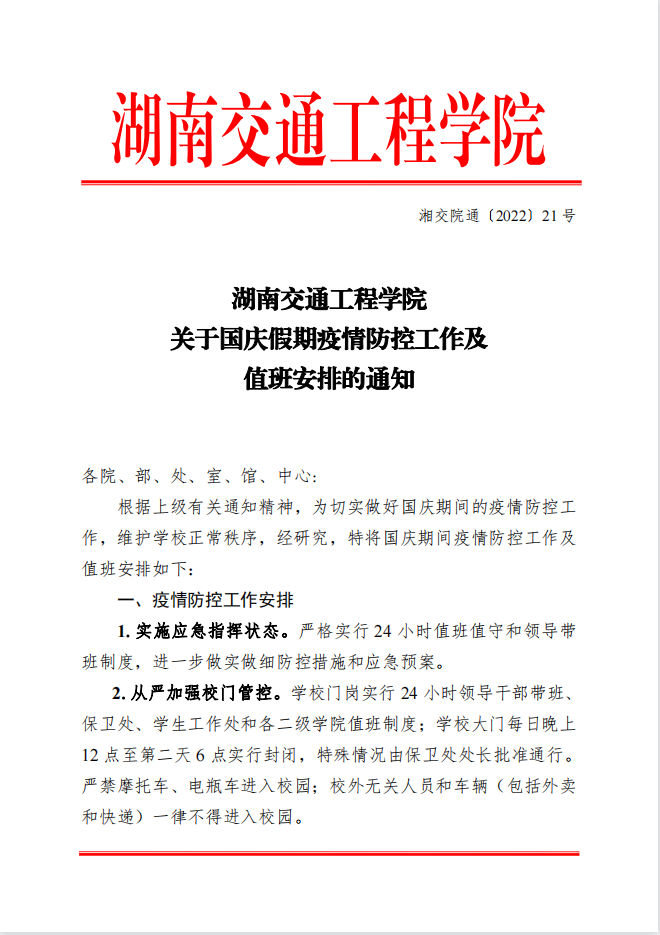 18新利在线登陆 关于国庆假期疫情防控工作及值班安排的通知