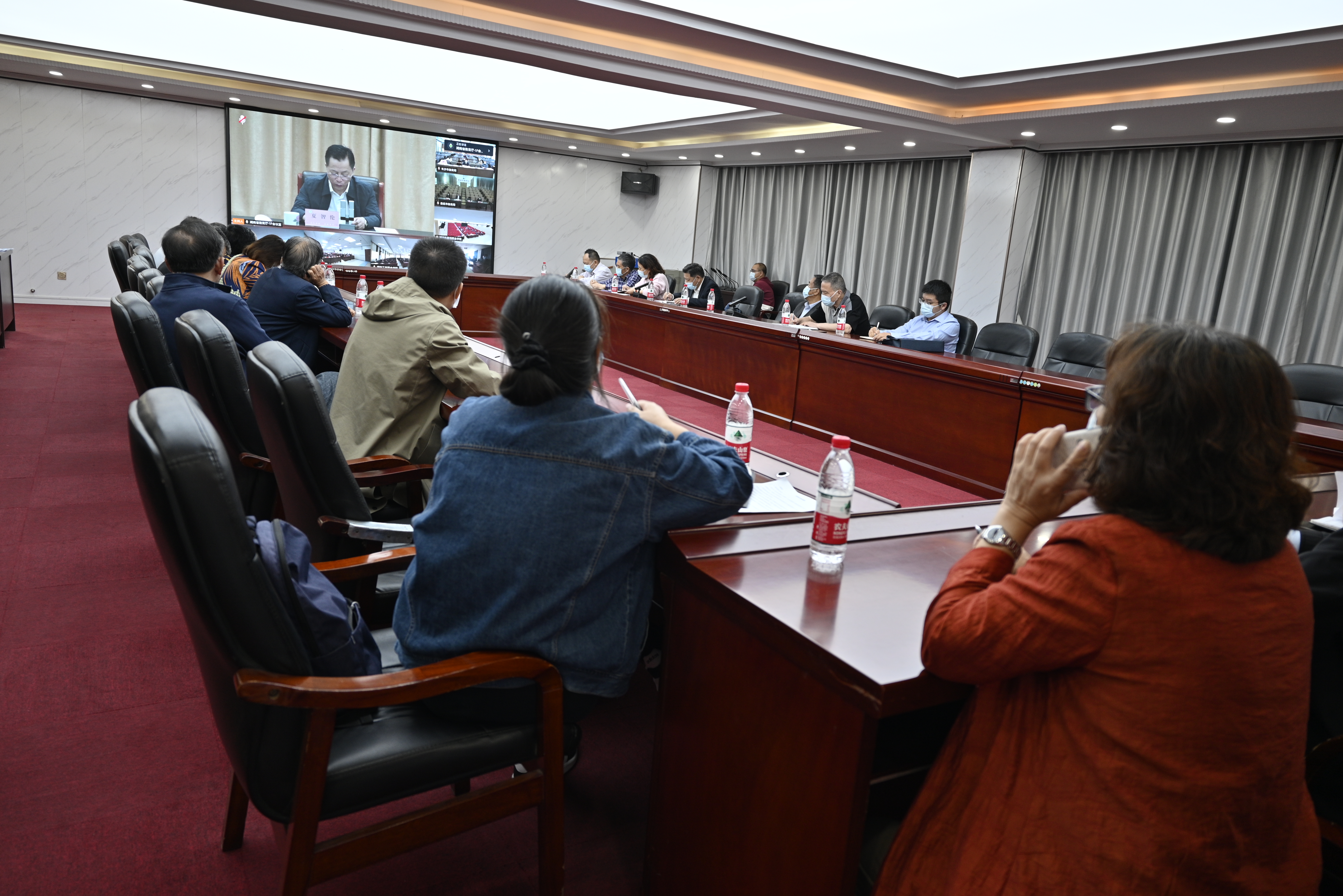 本网讯通讯员 摄影  赵红深 11月8日上午,学校在体育馆103会议室集中收看了全省民办高校专项督导工作动员培训视频会。董事长刘福生、校长陈治亚参加收看并作部署讲话,校董事会、党委、校务会班子成员,各处室和二级学院(部)主要负责人,评建办全体成员参会。