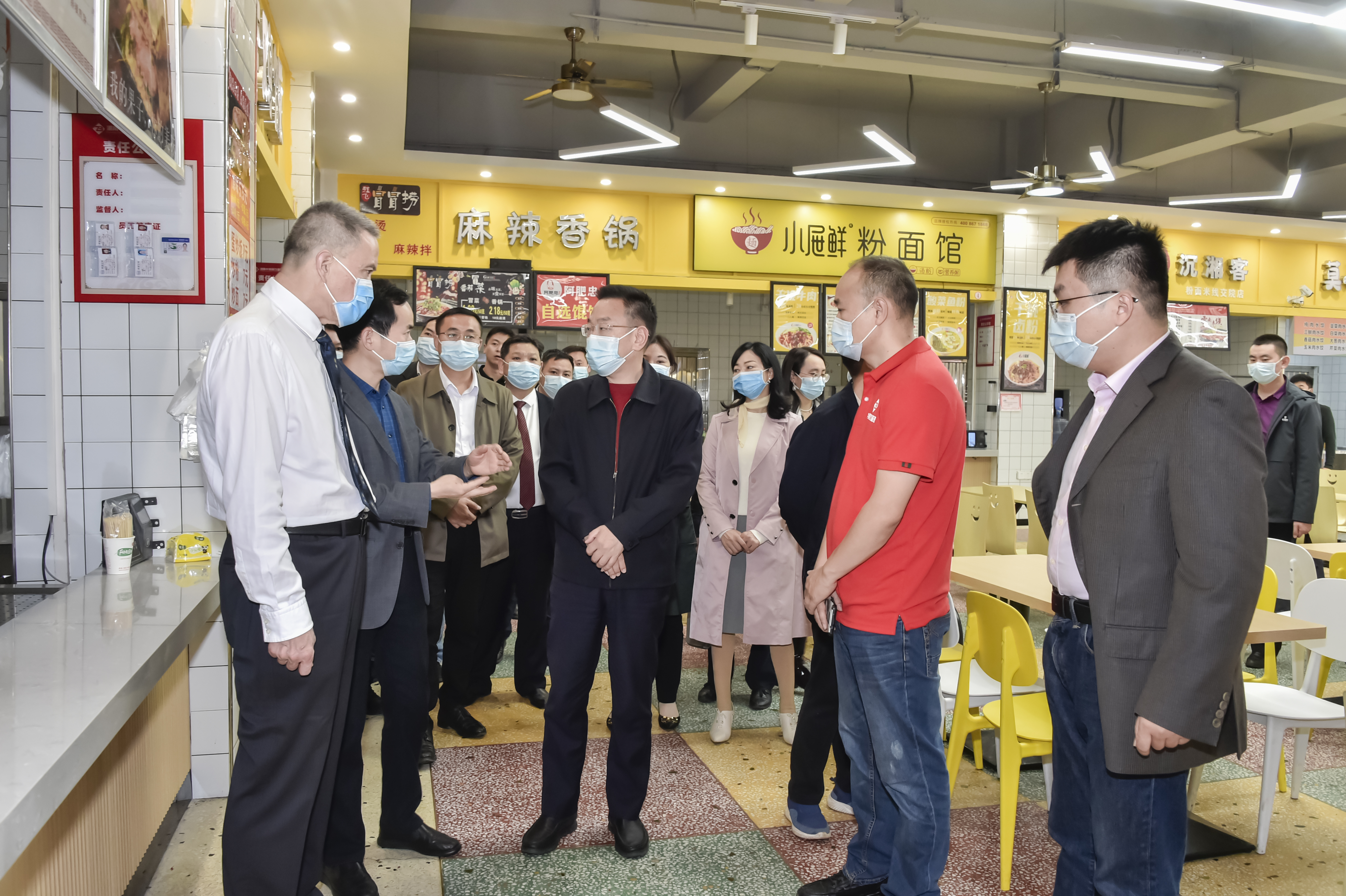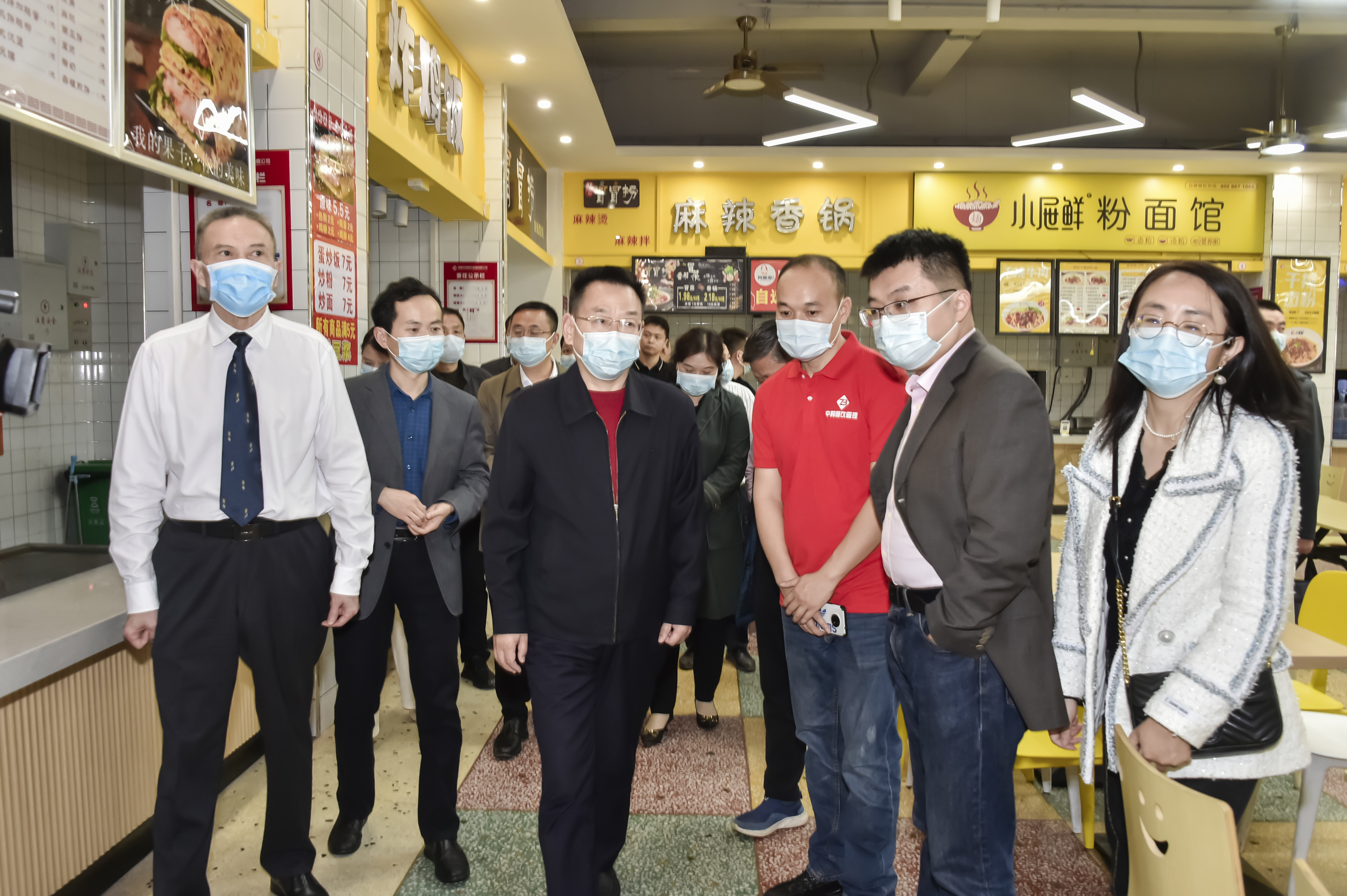 刘正兴一行在我校校长陈治亚、党委书记刘文君、执行校长刘杰、常务副校长彭文武、董事董晔卉等校领导的陪同下,重点查看了学生七食堂。刘正兴详细查看食堂食品安全管理、责任落实、原料采购、清洗消毒、留样保存等情况,听取食品安全监管、快检设备配备使用等情况汇报。刘正兴充分肯定我校食堂食品安全监管工作。他强调要高度重视学校食品安全工作,学校食堂关系到广大就餐学生的身体健康,学校要从原料采购、食品制作、食品保管、到食品上餐桌都要进行全程认真的监管。相关部门要定期监督指导,发现问题立即整改,坚决杜绝校园食品安全隐患。就进一步做好学校食品安全监管工作,调研组建议:一是加强宣传教育,提高师生食品安全意识,从严压实各餐食门店在疫情防控期间的主体责任;二是强化食品安全监管,做好源头严防、过程严管、风险严控的监管工作,切实加强食品安全监管部门的联动协作机制,严防群体性食物中毒事件发生;三是强化责任落实,督促完善管理体系,落实规章制度,严守食品安全底线为师生提供安全的就餐环境。