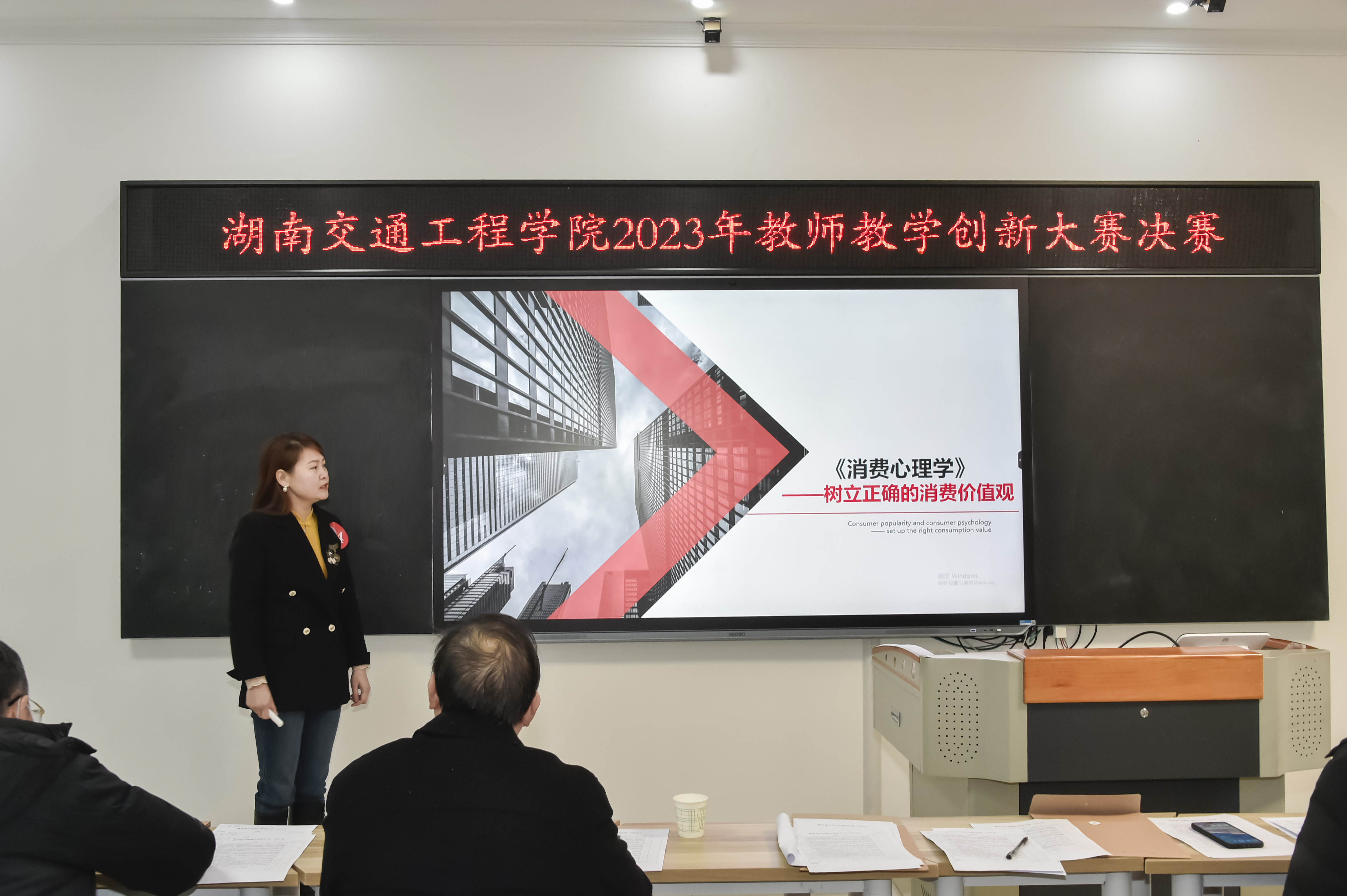 9个团队均结合自己的专业进行了精心准备,教学设计简洁合理,说课精彩纷呈,风格迥异,重点突出,逻辑性强;教学内容涉及《土木工程材科》《消费心理学》《统计学》《康复评定学》《道路勘测设计》等多门课程。竞赛中,参赛选手围绕教书育人、立德树人目标,以“上好每一节课”为理念,运用最新的信息技术和学科融合链接,呈现了信息化教学手段的灵活运用和课程思政元素的合理融入,充分展示了我校教师扎实的学科知识、精湛的教学技能和良好的精神风貌,赢得专家的一致好评。经过教学创新成果报告(或课程思政创新报告)、10分钟的教学设计创新汇报两个环节的激烈角逐,经济管理学院霍志玮参赛团队获一等奖,医护学院欧阳滢、机电工程学院肖云华等2个参赛团队获二等奖,交通运输学院蔡双阳和易欢婷、电气与信息工程学院周滨、创新创业学院周永、经济管理学院高佳薇等5个参赛团队获三等奖。其中一、二等奖参赛团队拟推荐参加湖南省2023年教师教学创新大赛。
