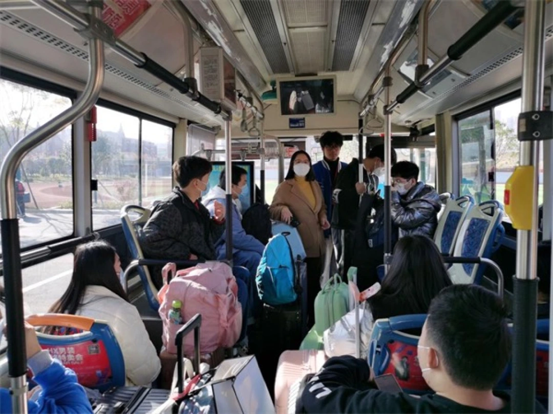 学生离校之际,为最大限度保障离校学生安全,学校在校大门绿色文化广场设立送站点,爱心送站车辆早早到达,每天分时段为同学们提供免费送站服务,护送学生点对点到高铁站、火车站。校门口,随处可见学工部工作人员、辅导员老师、志愿者耐心引导学生前往车队停靠点、帮助学生搬送行李上车,确保1万2千余名学生安全返乡。