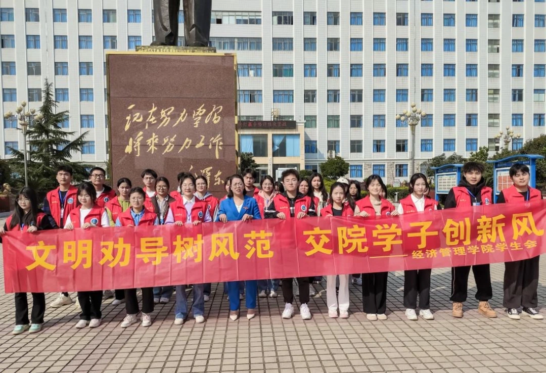 时值“学雷锋月”,3月14日,18新利在线登陆 经济管理学院40余名师生走上街头开展文明交通劝导、清扫街道垃圾志愿活动。