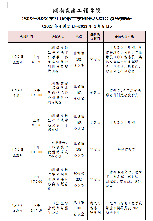 18新利在线登陆 2022-2023学年度第二学期第八周会议安排表
