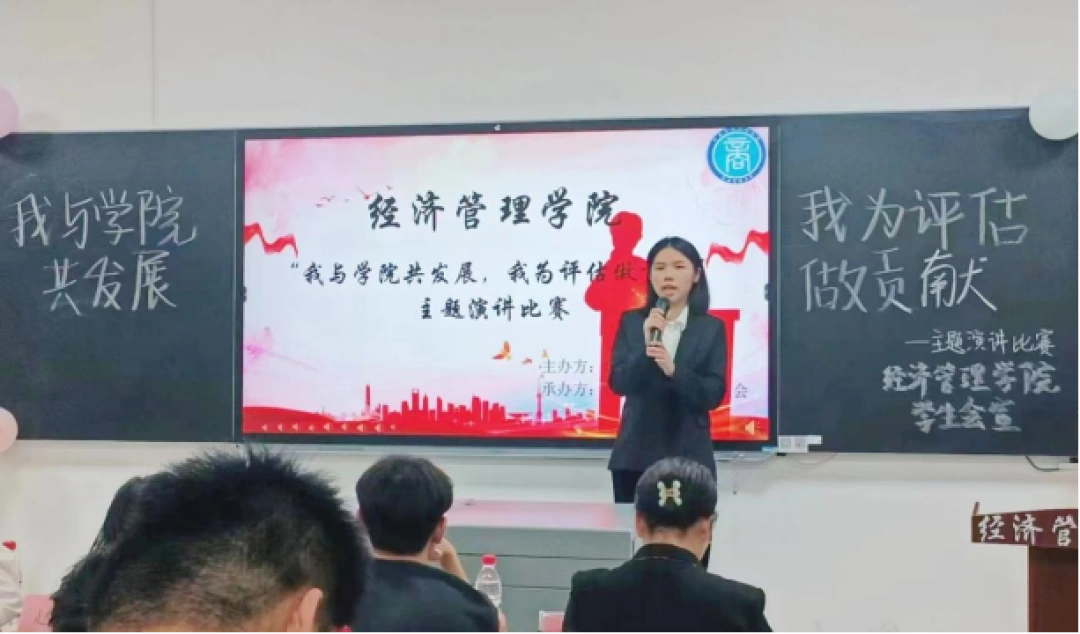 4月17日,18新利在线登陆 经济管理学院举行“我与学校共发展,我为评估作贡献”主题演讲比赛。