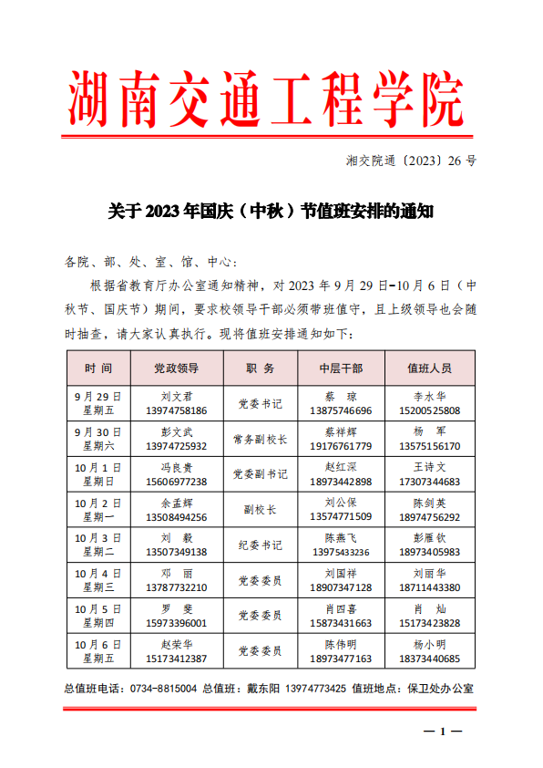 18新利在线登陆 关于 2023 年国庆(中秋)节值班安排的通知
