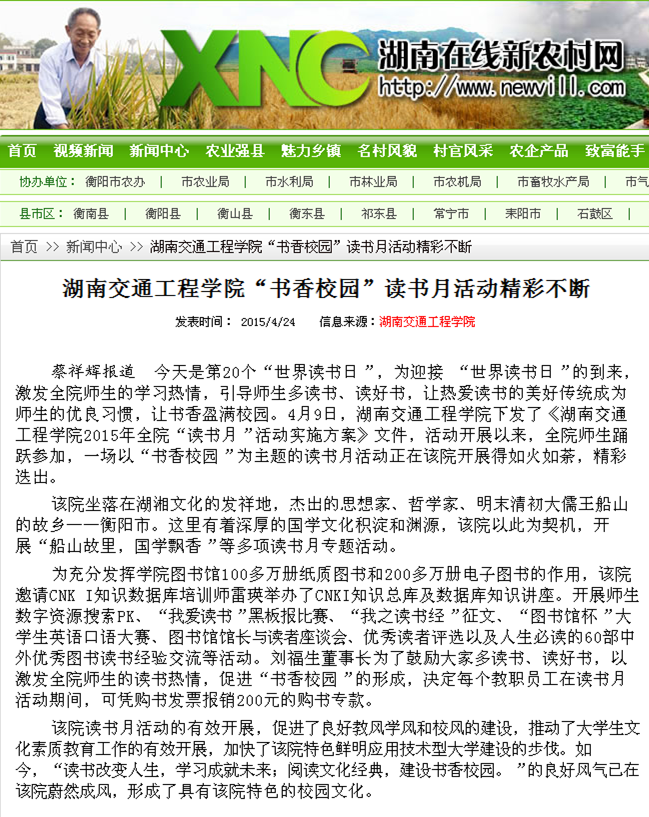 《湖南新农村在线》对我院的报道