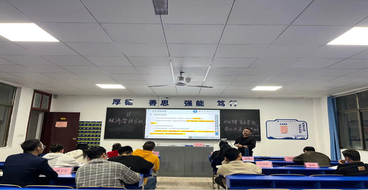 2023年11月7日晚上19:00,经济管理学院在教学楼404开展第四次辅导员集中培训,本次培训由经济管理学院党总支书记赵荣华,副书记李燕丽组织开展,经济管理学院全体辅导员参与,本次培训由辅导员吴伟老师围绕学生资助政策为中心开展授课。
