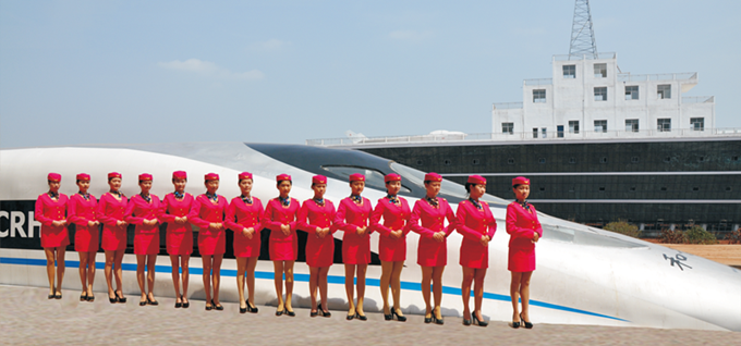 “和谐号”高铁动车乘务实训。