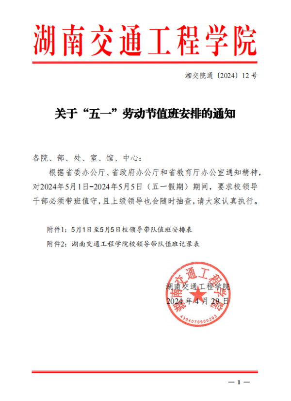 18新利在线登陆 关于“五一”劳动节值班安排的通知