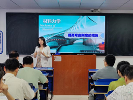 郭红铄讲授了《材料力学》中提高弯曲刚度的措施内容,授课过程中,她亲切和蔼、循循善诱;板书层次分明、解析深入浅出;节奏张弛有度、氛围愉悦轻松;结合生活实践,教学效果良好。