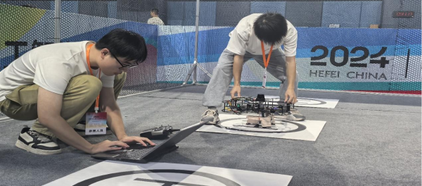 新质生产力创新设计赛项,入围全国总决赛的如国防科技大学、哈尔滨工业大学、中南大学、同济大学、四川大学等共计106个队;微型无人机赛项,入围全国总决赛的如上海交通大学、武汉大学、哈尔滨工业大学、吉林大学、武汉大学等共计45个队。我校代表队自主开发的微型机器人或微型无人机在图像识别、自然语言处理、复杂环境适应性、自主决策能力、以及稳定性等方面展现了技术实力,接近了全国诸多名校的水平,通过同台竞技收获颇丰。