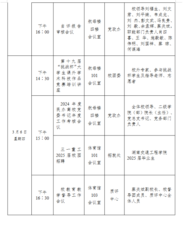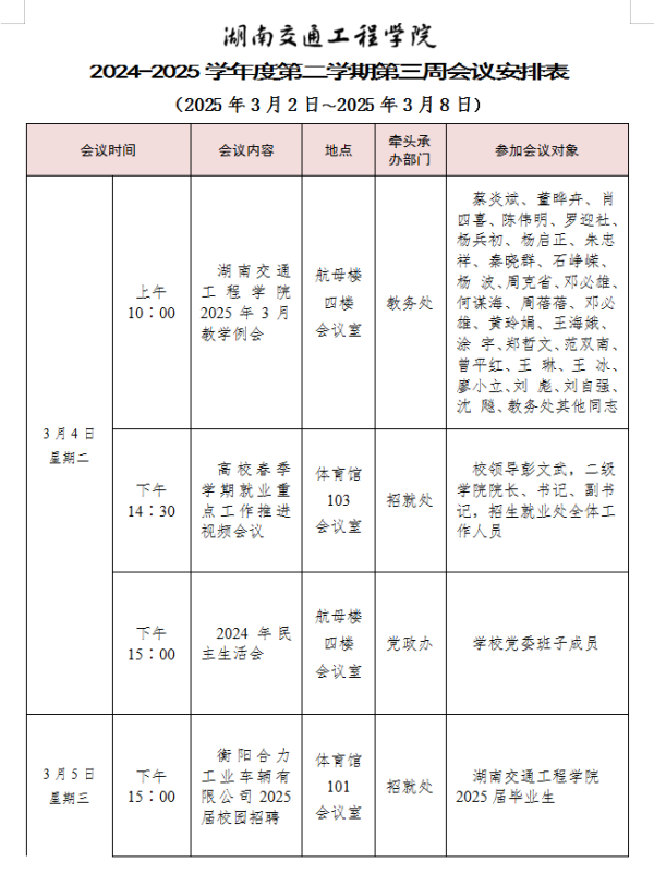 18新利在线登陆 2024-2025学年度第二学期第三周会议安排表