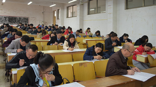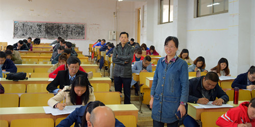 本网讯(通讯员摄影李建华)4月29日,我校辅导员思想政治工作专题培训班结业考试在教学大楼401教室和机电楼408教室有条不紊地进行。党委委员、副校长刘秋菊,副校长黄名文,党委委员、党务工作部副部长邓丽亲临现场巡考,党委宣传部和学生工作部主持考试。