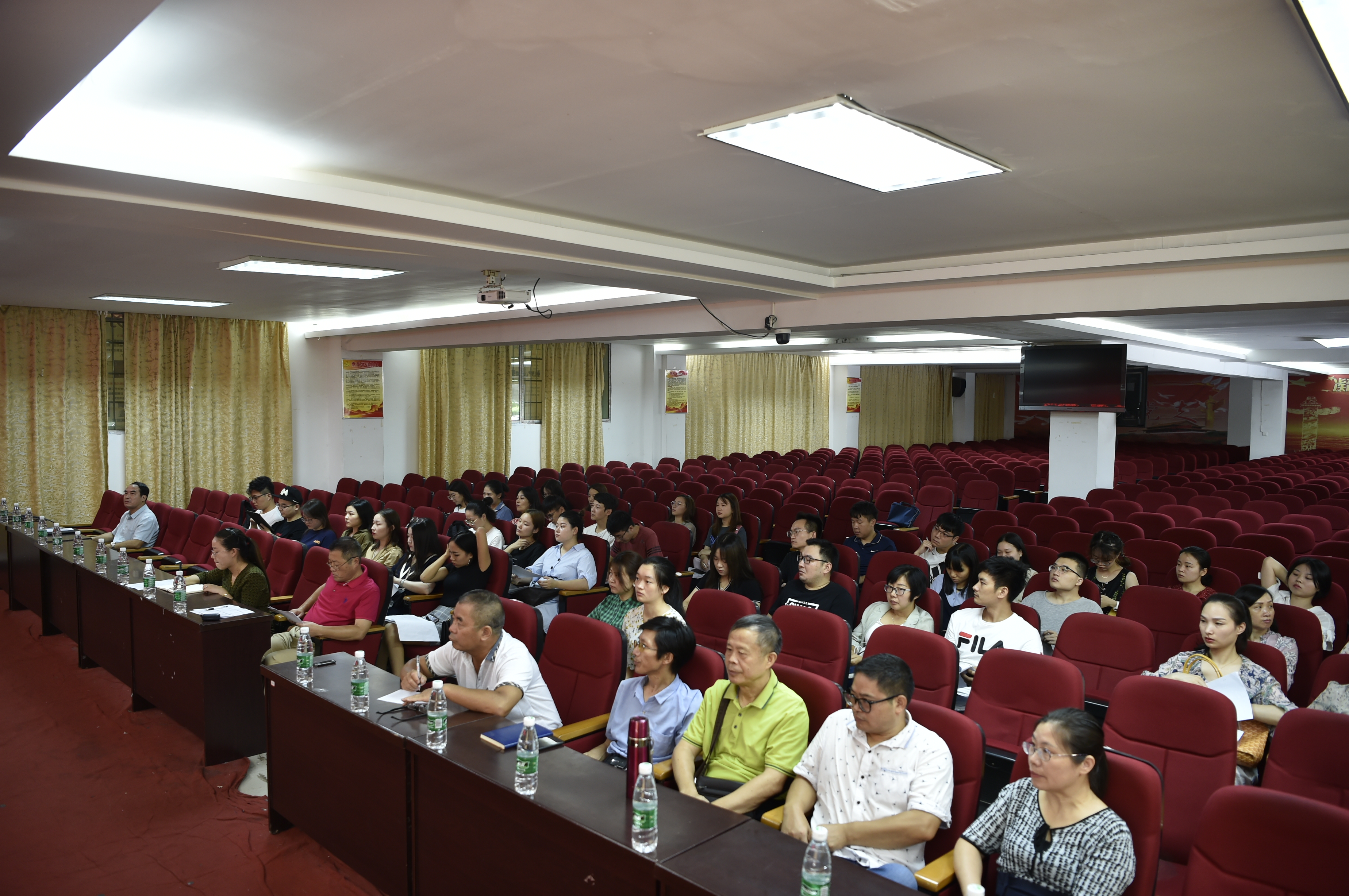本网讯(通讯员摄影李建华)为帮助新入职教师更好地胜任教学工作和履行岗位职责,提高专业素养和教学能力,积极融入学校的发展和建设,8月27日上午,学校在体育馆101会议大厅举行2019年新聘教师培训开班典礼,董事长刘福生,党委书记苏玲,副董事长、第一副校长刘杰,常务副校长彭文武,副校长黄名文、董晔卉、刘孟祥出席开班典礼,二级学院书记、院长及人事处、教务处、宣传部等部门负责人以及2019年新入职的48名教师参加了开班仪式。仪式由彭文武主持。