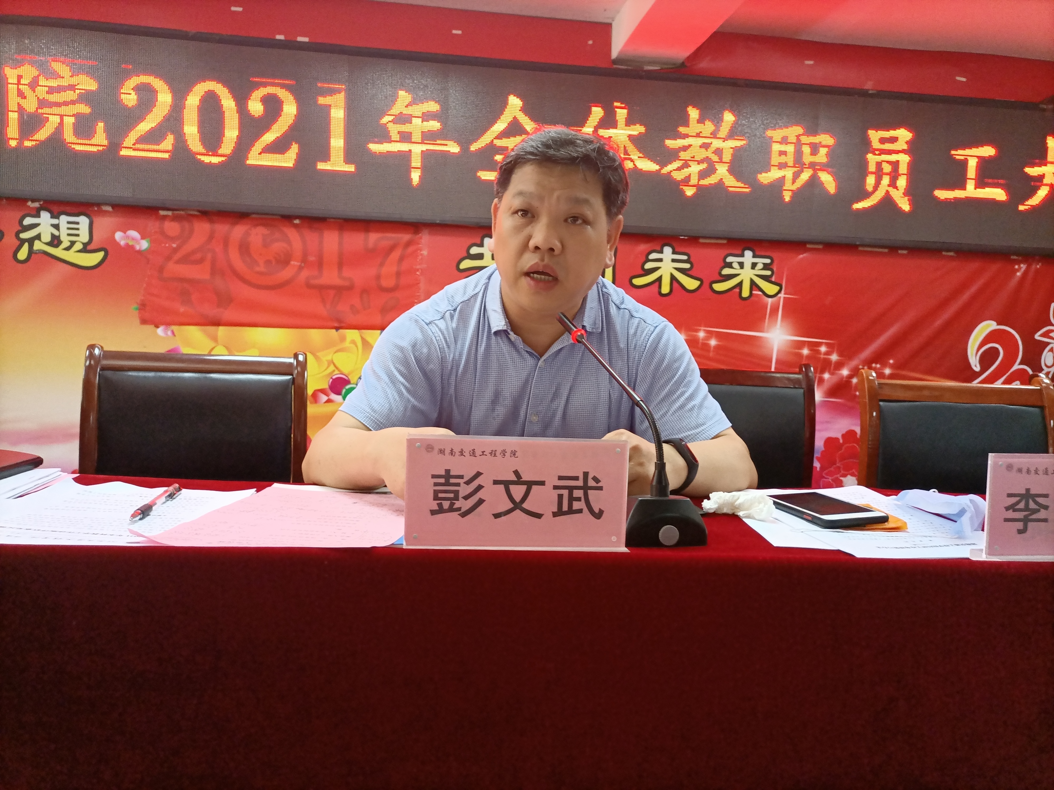 彭文武在主持会议中指出,校长的报告主题明确、内容丰富,针对性很强,为我们今后一段时期的工作指明了方向。广大教职员工的快乐幸福与学校的发展息息相关, 学校是我们的命运共同体。合格评估迎评促建工作现己进入关键时刻,大家务必增强忧患意识,全面审视各自的工作,实事求是地找差距、查短板、寻弱项,加快补齐短板、扩大优势。彭文武强调,本次会议进一步增强了广大教职工做好工作的信心和勇气,对做好今后一个时期工作具有很强的指导意义。各行政处室、各二级学院要认真组织学习讨论陈校长的报告和董事长的讲话精神,围绕学校发展大局,主动思考,积极作为,为推进迎评促建进程和“双一流”建设作出更大的贡献。(责编:彭文武)