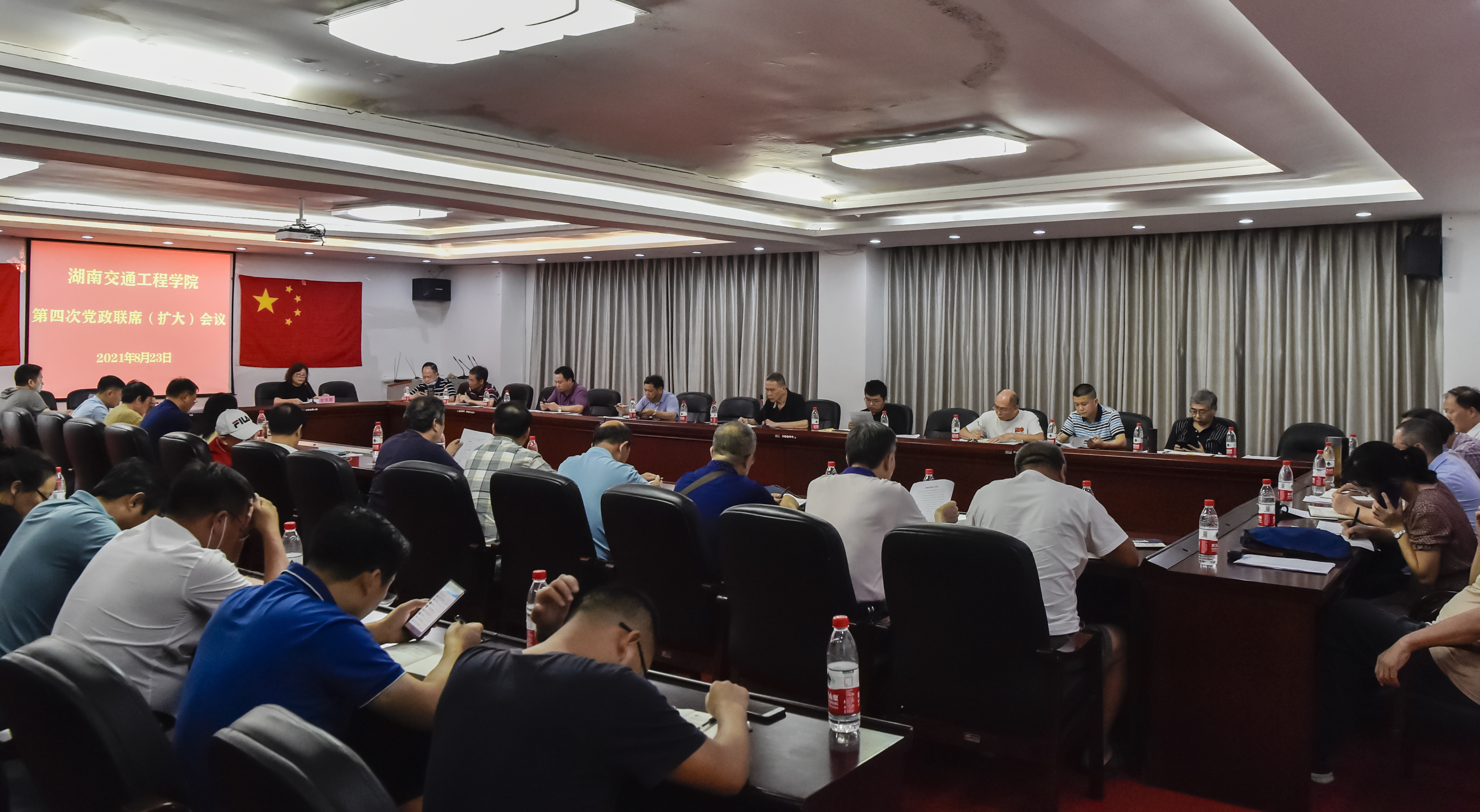 本网讯记者 赵红深  摄影 李建华8月23日下午,校长陈治亚在体育馆103会议室主持召开第四次党政联席(扩大)会议,部署2021年秋季开学工作。董事会成员、校党政领导出席会议。