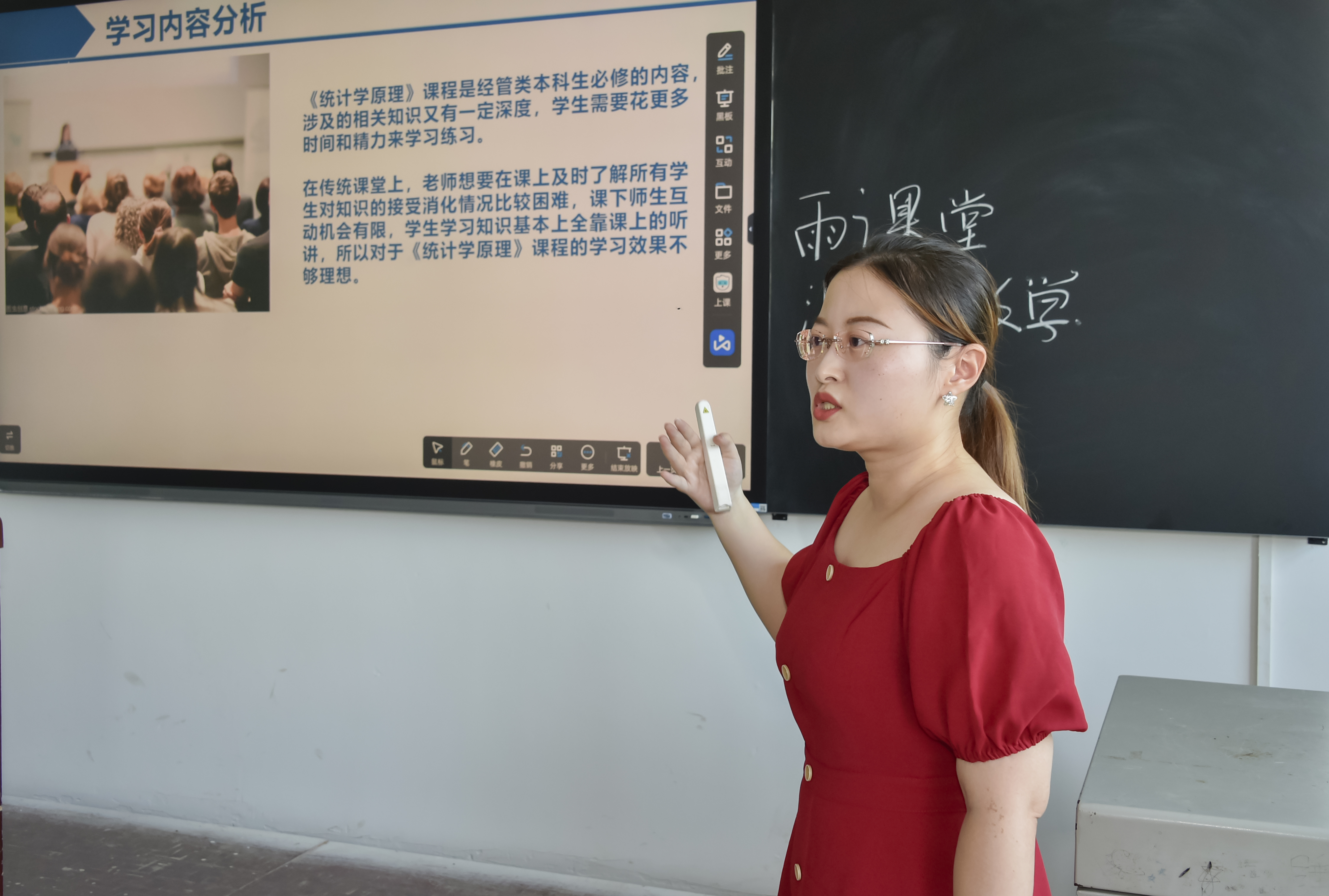 本网讯(记者 赵红深  通讯员  王海娥  摄影 李建华为进一步推动教师主动适应信息化、人工智能等新技术变革,积极有效开展教育教学,不断提高课程育人能力,学校组织举办了2021年信息化教学竞赛活动。经过各二级学院前期的初赛选拔,9月3日学校在教学楼105室举行信息化教学校级赛,来自各二级学院(部)的10名教师参加了现场授课决赛角逐。