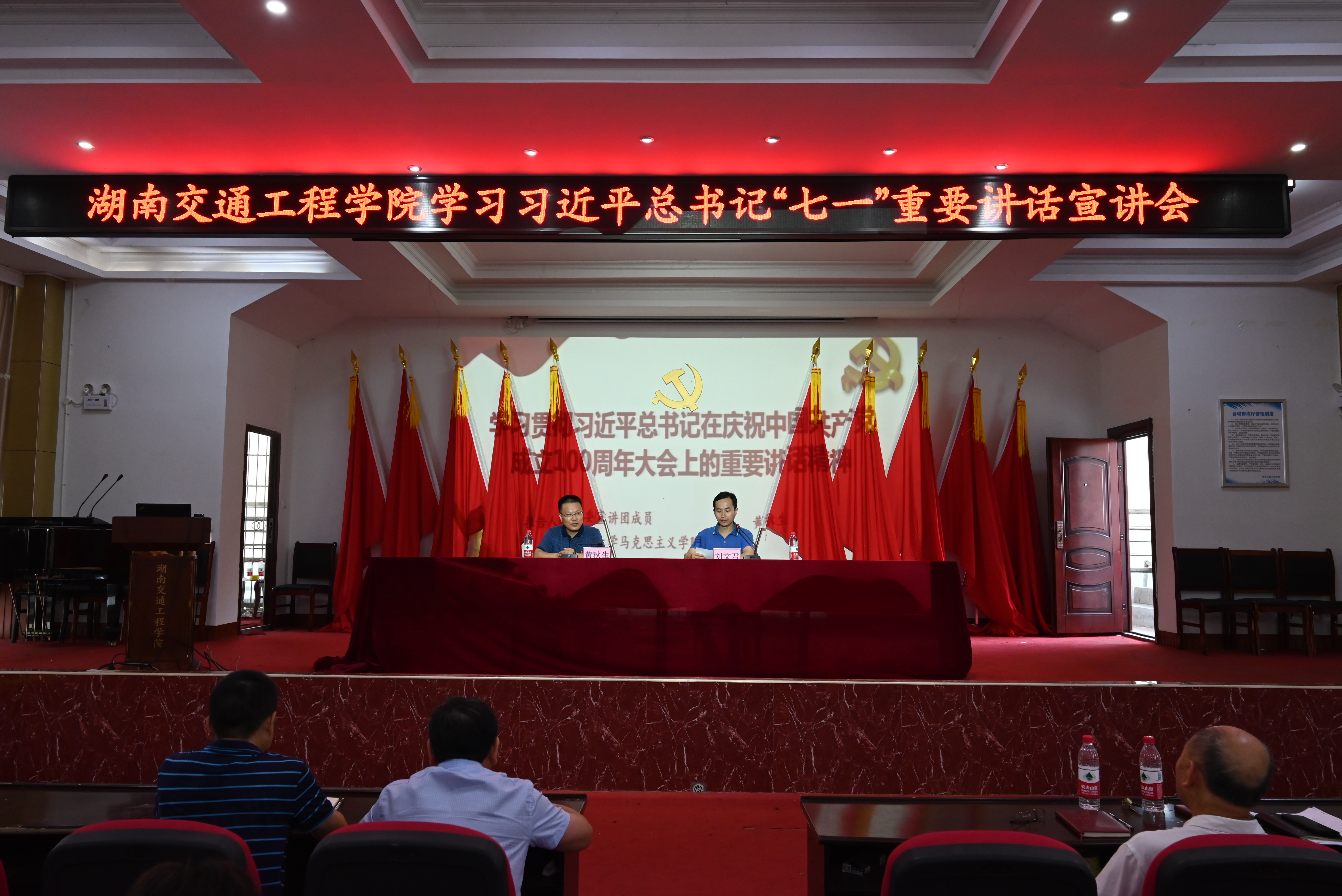 董事长刘福生、执行校长刘杰、名誉校长刘平娥、党委副书记李先聪、常务副校长彭文武、纪委书记刘毅,  副校长刘初生、余孟辉,校长助理方彰训等在校校领导出席宣讲报告会,机关干部和没课的教职工聆听了宣讲报告。(审核:刘文君)