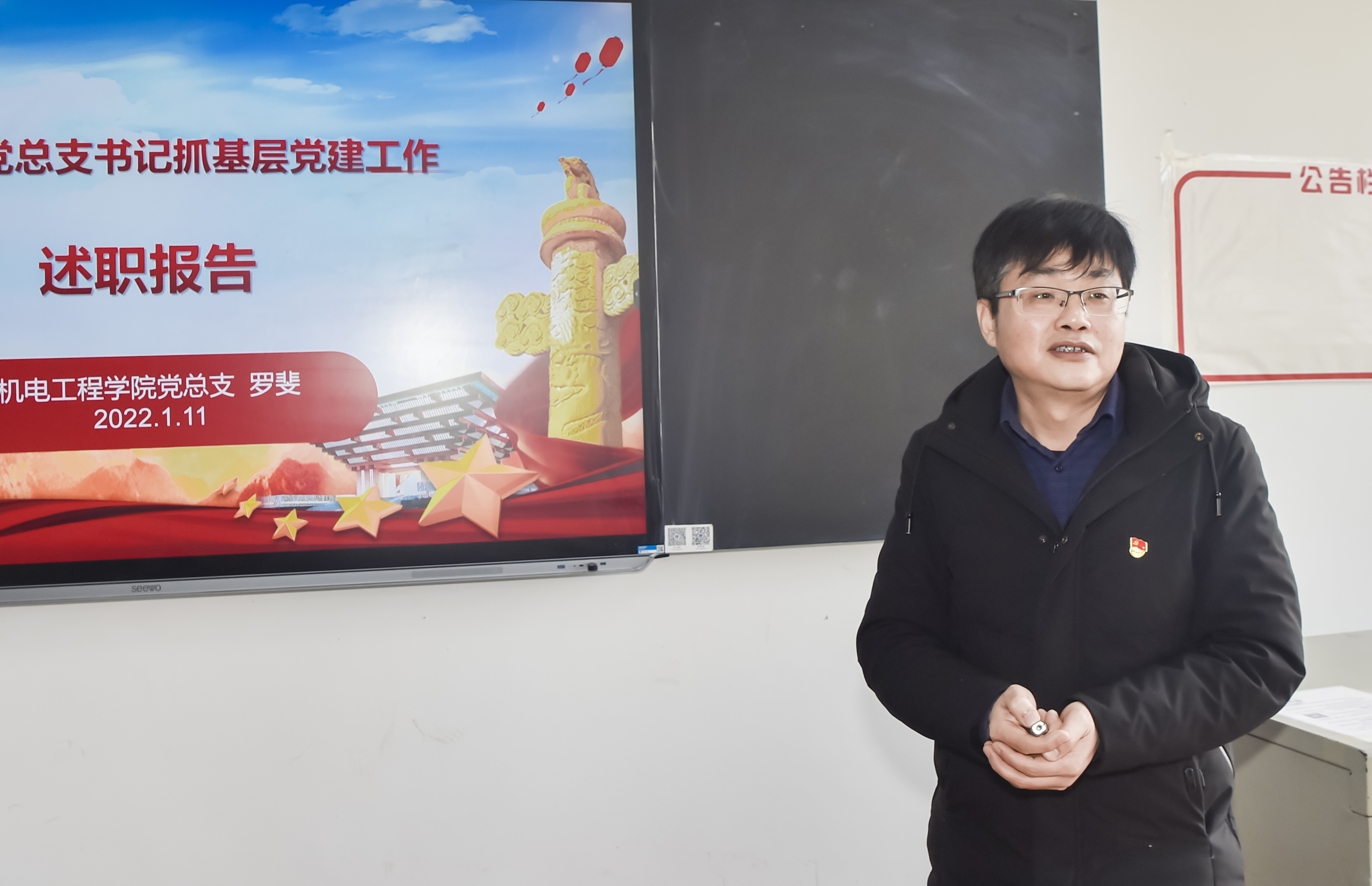 本网讯(记者 赵红深 摄影 李建华 )1月11日上午,学校在教学大楼106室召开2021年度党总支书记抓基层党建工作述职评议会议。全体在家校领导出席会议,7位党总支书记进行述职,党政部门负责人、党总支副书记、支部书记、教师和学生代表参加会议。党委副书记李先聪主持。