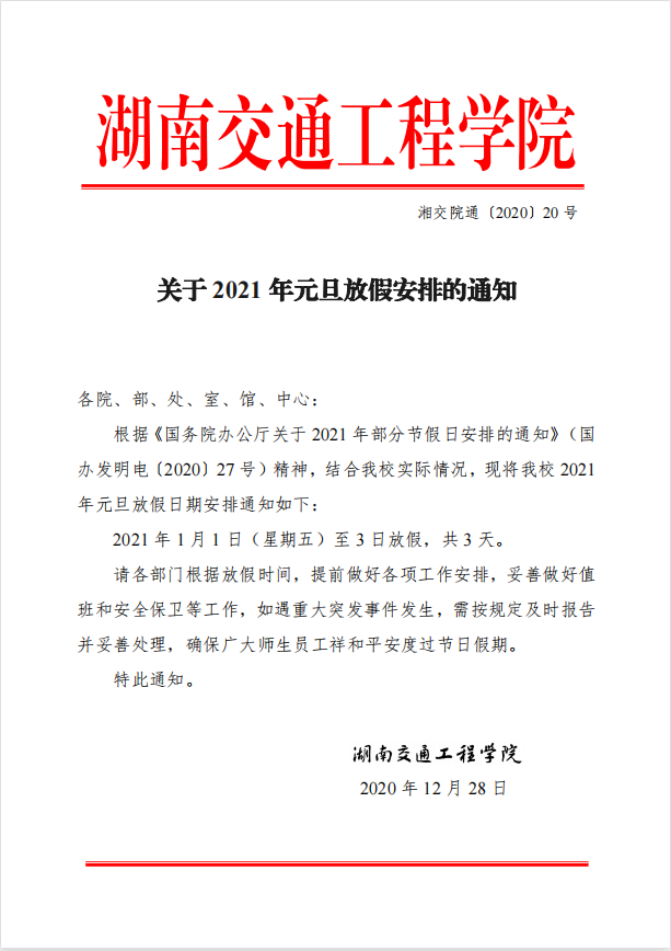 关于2021年元旦放假安排的通知