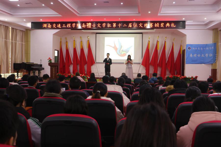 本网讯(通讯员 胡可)12月1日,南禮士文学社第十二届征文比赛“看你我青春之际,扬交院学子风采”颁奖典礼在航母楼一楼会议室隆重举行。校党委委员、党务工作部部长、护理学院党总支书记兼南禮士文学社指导老师邓丽,图书馆老师张海兵、万魏,共青团18新利在线登陆 委员会李丽平,衡高文委主席唐震民,社团联合会负责人唐果及学校其他社团负责人出席颁奖典礼,全体社团成员到会。