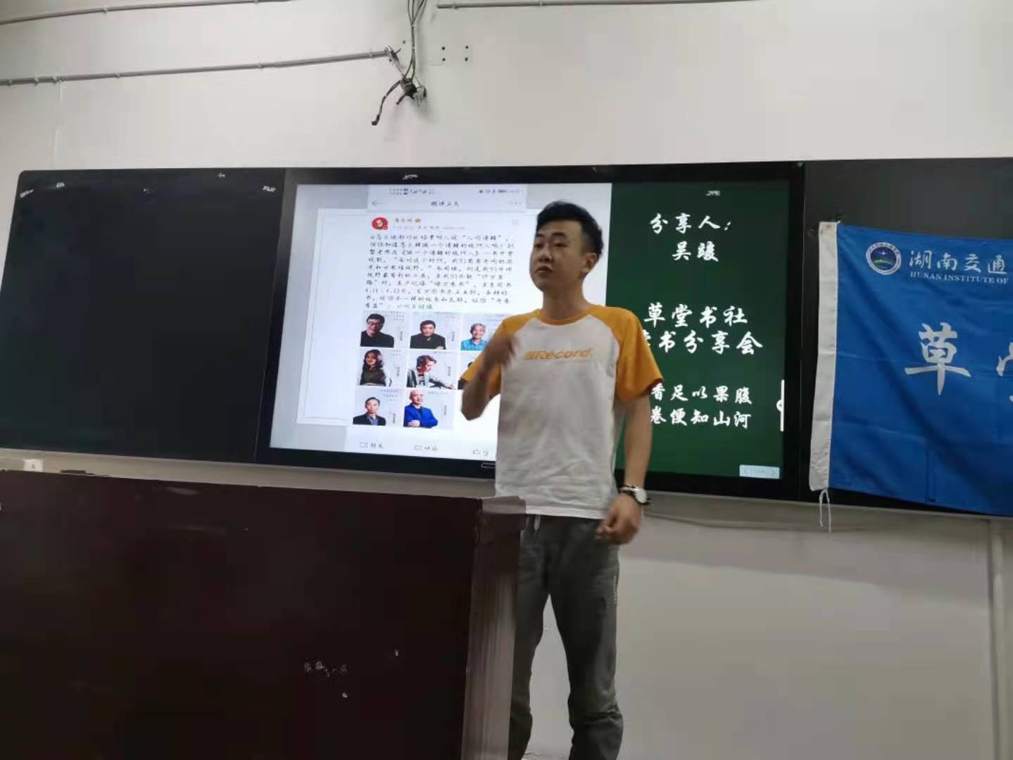 2021年4月22日晚上,草堂书社在教学楼105教室举办读书分享会。书香足以果腹,万卷便知山河。我们共聚一堂,听大家分享自己最喜欢的书。从吴竣学长分享的《民族与文化》和《中华文化十二讲》中了解到中华民族与文化的本质、特征;