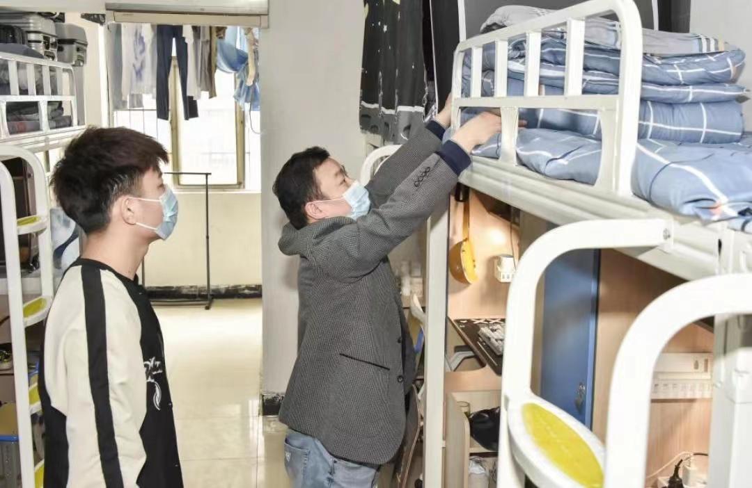 4月14日,18新利在线登陆 机电工程学院领导班子及辅导员深入学生宿舍察看宿舍文化建设进展情况。该院机制 2104班学生干部邵迟恩说:“将工匠精神融入宿舍文化建设,陶冶了情操,增进了友谊,润物无声地培养了我们敬业精益专注创新的精神,大家守望相助,团结协作,共同打造精神家园,疫情阴霾下让我们更加阳光自信!”