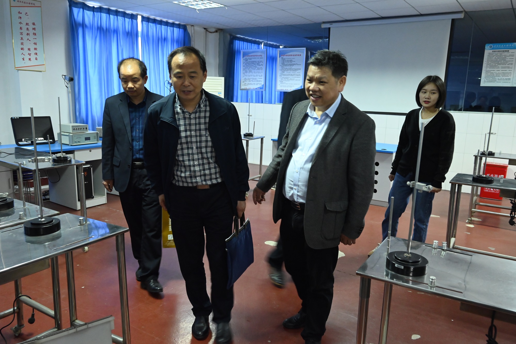 本网讯(记者 摄影 赵红深)5月10日下午,以中南大学张斗为组长,湖南科技学院孙明、湖南理工学院严权峰、长沙师范学院罗爱军为专家组成的省教育厅2022年高校实验室安全现场检查专家组一行4人来我校开展科研实验室安全检查。我校常务副校长彭文武,副校长樊晓平、余孟辉出席汇报会,教务处、设备处等相关职能部门及各二级学院(部)负责人参加会议,汇报会由樊晓平主持。