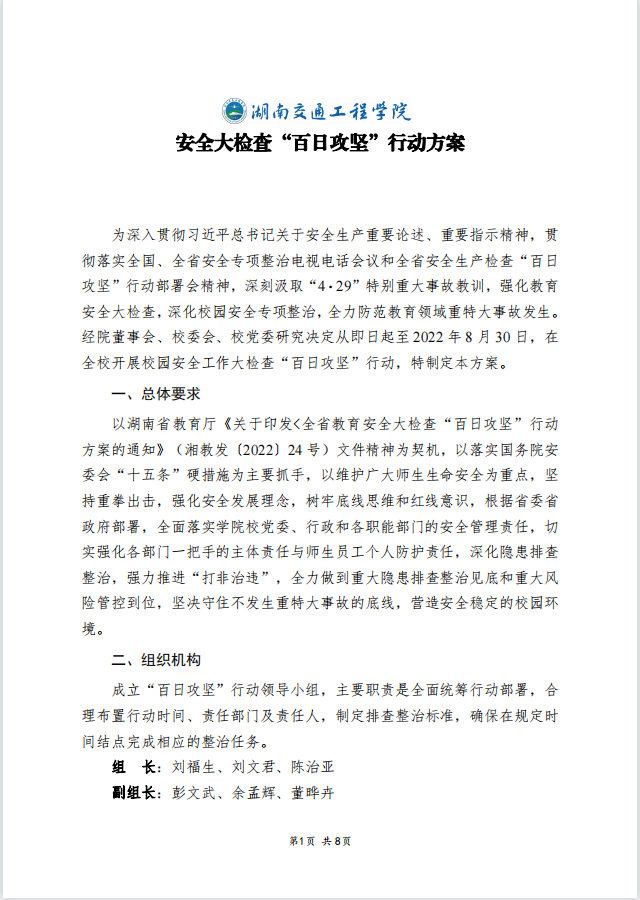 关于印发《18新利在线登陆 安全大检查“百日攻坚”行动方案》的通知