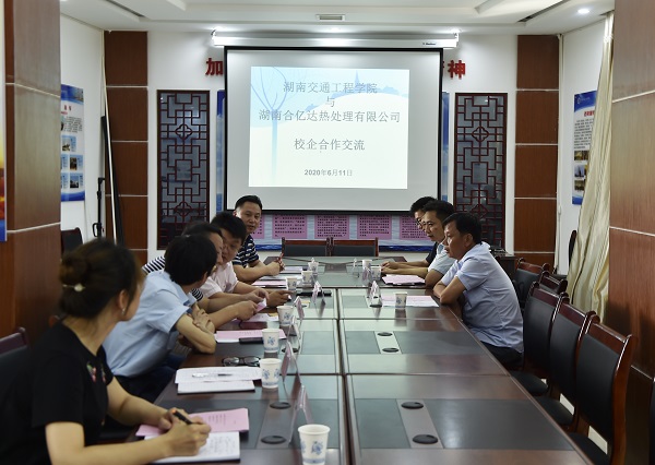 湖南合亿达热处理公司是一家以热处理加工及特种材料销售、模具部件制造为主的大型企业。产业涉及高铁、航空航天、汽车零部件、电子冲压件等相关行业。赵根来代表公司介绍了企业构成、生产情况、实习生招聘计划和合作意向等,校院领导就校企合作的合作模式、具体内容、人才培养、企业导师安排等进行了说明并提出具体要求。