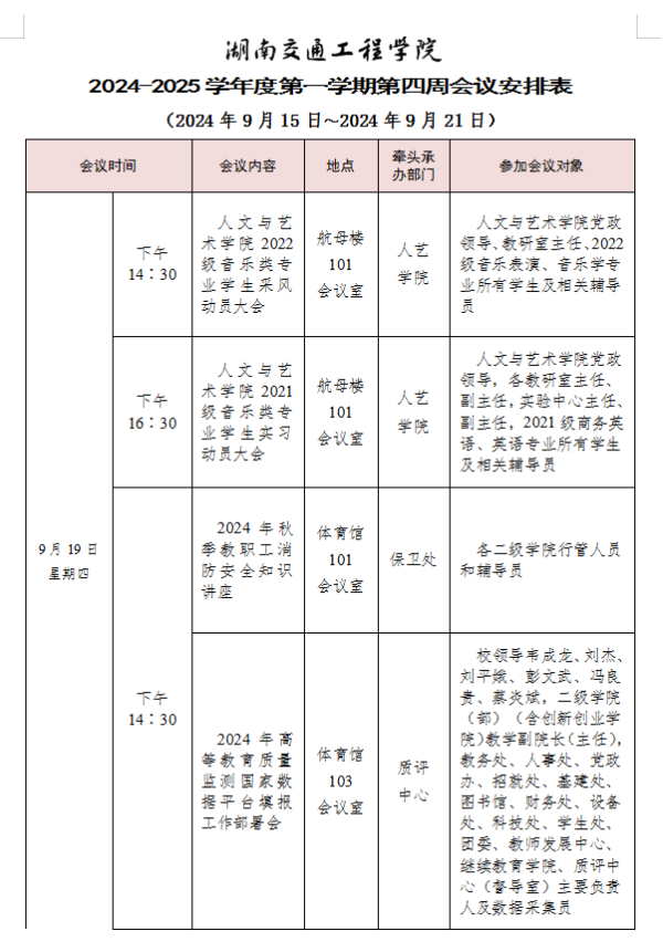 18新利在线登陆 2024-2025学年度第一学期第四周会议安排表